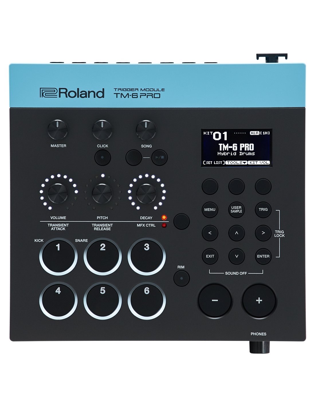 - 3 Sound Modify Knobs for intuitive control of volume, pitch, decay or other effects, including newly developed MFX and Transient Transient
