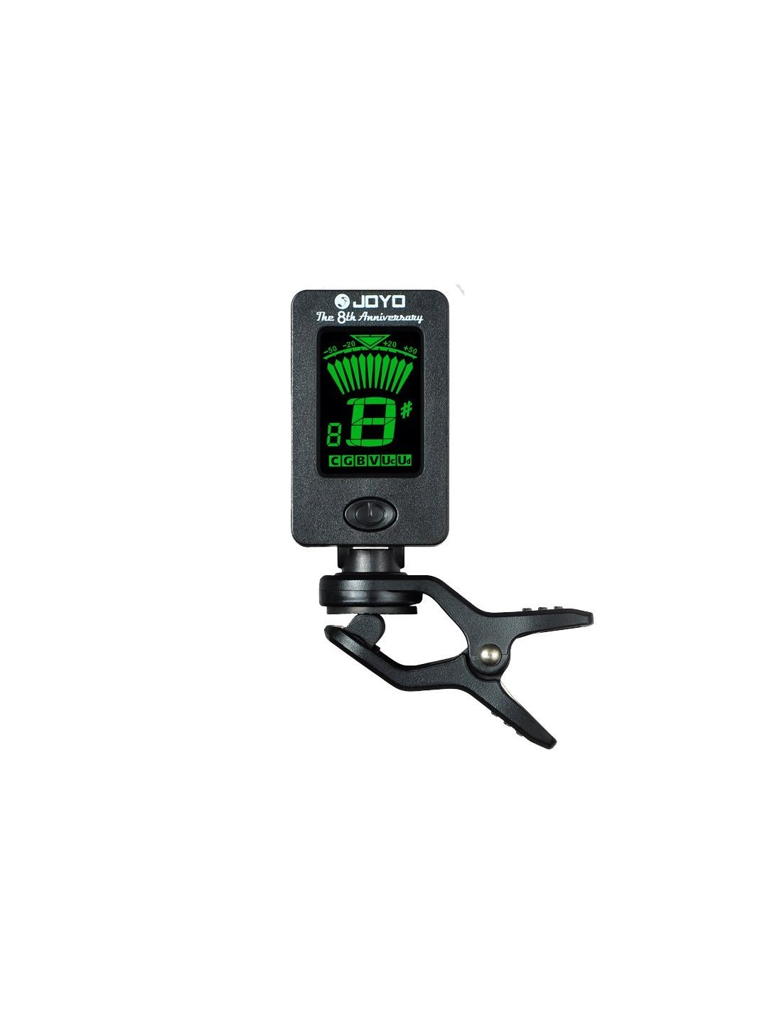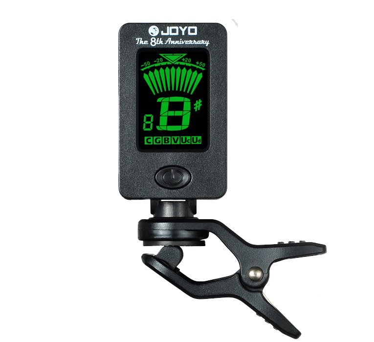 The JT01 is a chromatic clamp tuner for guitar, bass, violin and ukulele from Joyo. It features a large LCD screen and an included CR2032 button battery