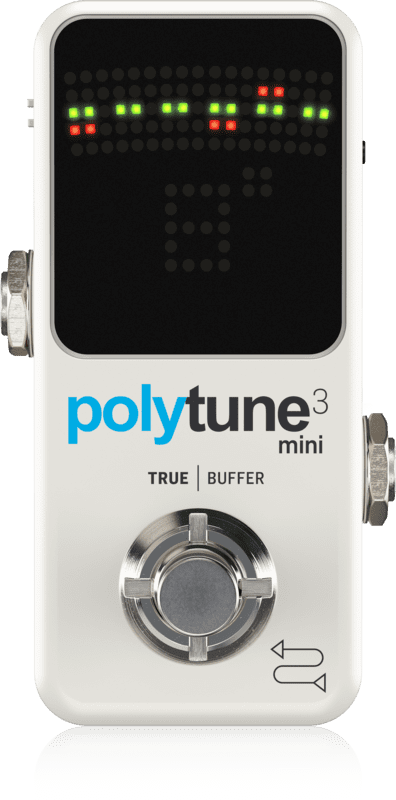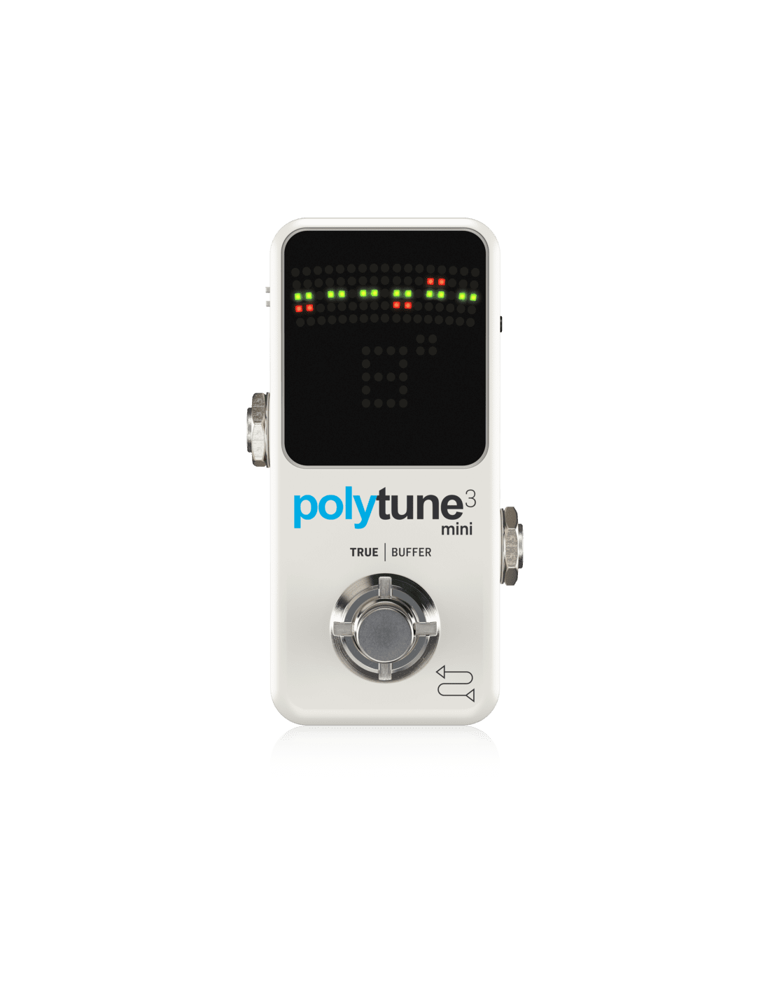 TC Electronic Polytune 3 Mini Polyphonic Tuner. The TC Electronic Polytune 3 Mini is a pedal tuner in mini, chromatic, polyphonic and strobe format that in this new version also includes a high-quality buffer (BonaFide Buffer). It is equipped with a large and bright 109 LED Retina display with ambient light sensor, “Always on” tuning mode, automatic switching between polyphonic and monophonic tuning modes. Possibility to select the true bypass or true buffer function