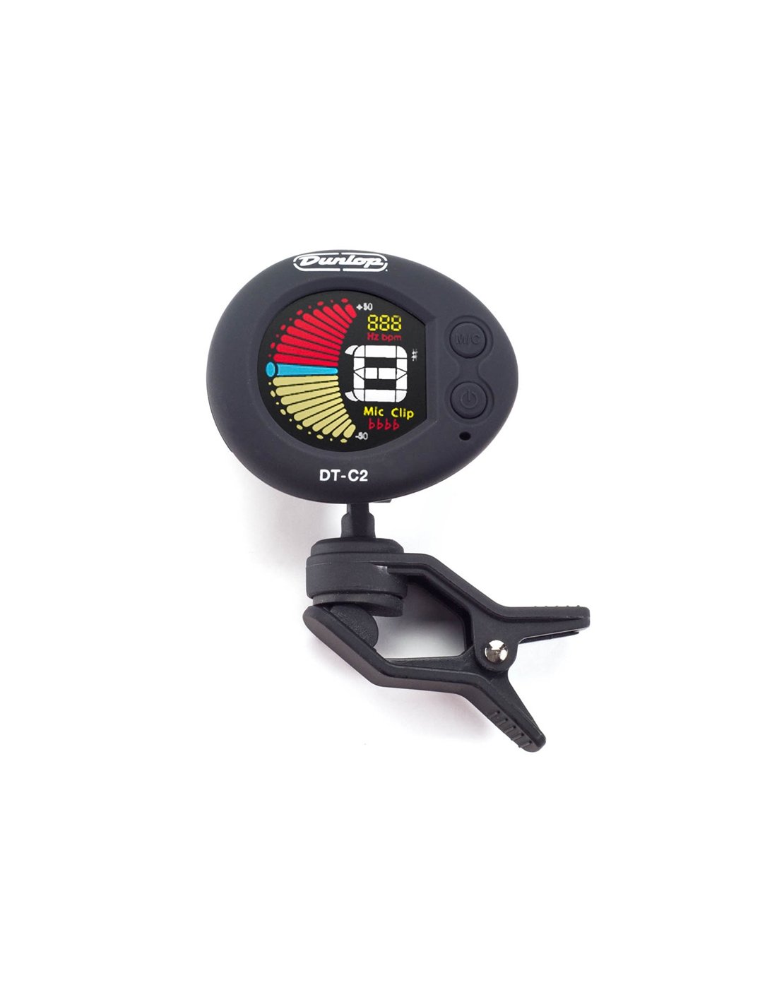 .The Dunlop DT-C1 tuner offers accurate chromatic tuning ideal for guitar and bass, even low B, violin and ukulele with an easy-to-read 4-color display. The reference frequency is adjustable from 430Hz to 490Hz, there is an integrated silent metronome, tuning in microphone or Clip mode and Flat tuning
