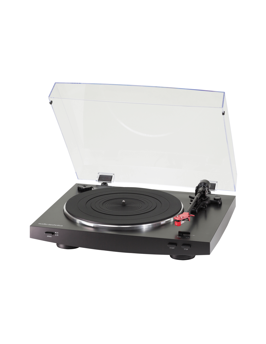 The AT-LP3 fully automatic belt-drive turntable allows you to take your analog listening experience to the next level with advanced features not typically found on automatic turntables. The balanced straight arm comes with a universal head holder with 1/2" attachment and an AT91R Dual Moving Magnet phono cartridge, which offers excellent high-fidelity performance, in addition to the possibility of using other moving magnet or moving coil heads of your choice. The lift control allows you to lower and raise the stylus precisely and safely at any point on the disc. However, the turntable also offers fully automatic operation, so you can simply press the Start button to start the playback and the Stop button to raise and return the arm tone and turn off the turntable (the stop function occurs automatically when a disc has been played all the way through). The AT-LP3 is built with vibration-damping materials that limit low-frequency feedback. The resonance is further reduced by the turntable die - die-cast aluminum plate and 4 mm rubber damper mat. Equipped to play records at both 33-1/3 and 45 revolutions, the AT-LP3 is equipped with an integrated switchable phono preamplifier and a connected dual R AC output cable that allows it to be connected to a home stereo, powered speakers and other components, regardless of whether or not they have a dedicated turntable input. Available in black (AT-LP3BK) and white (AT-LP3WH)