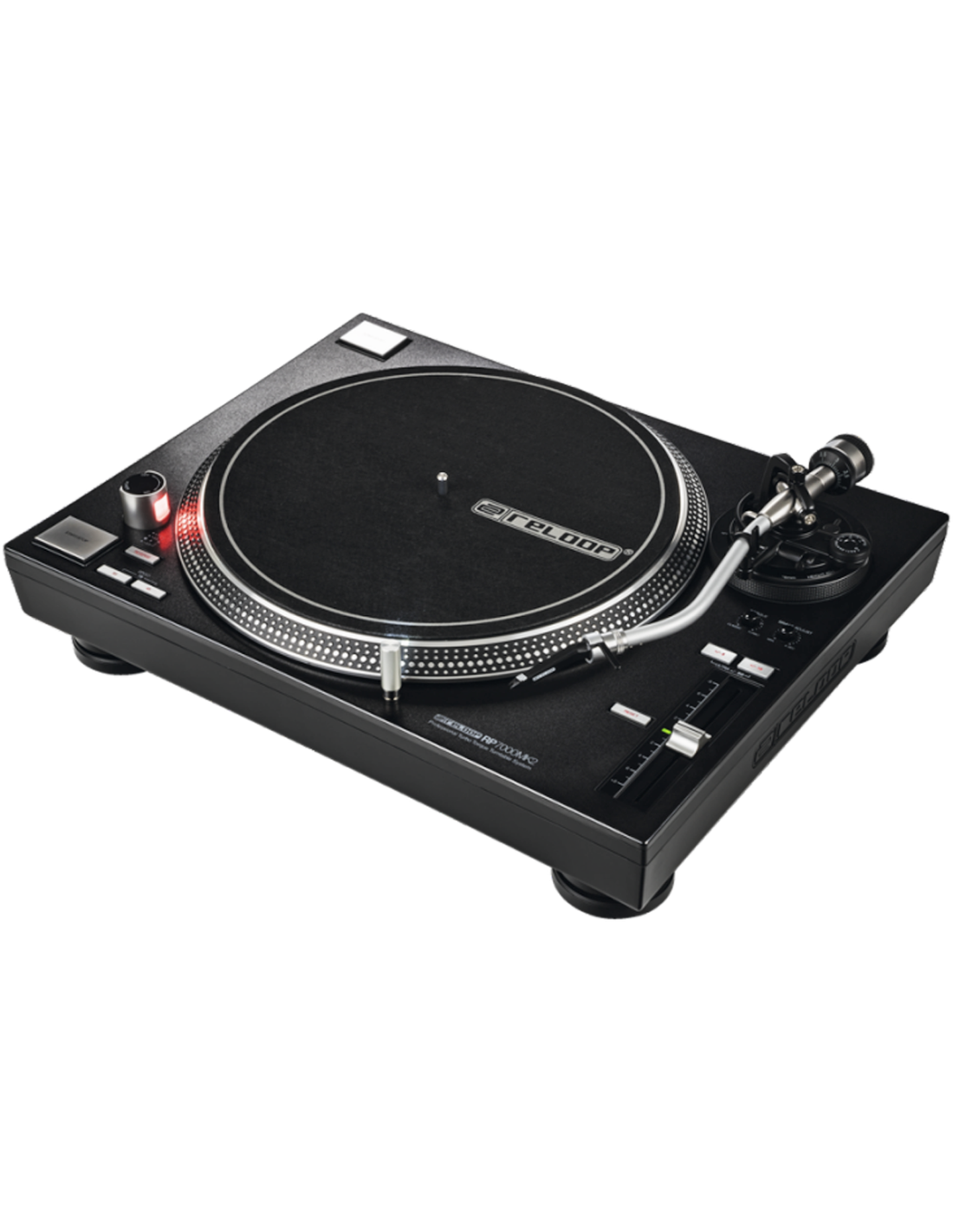The Reloop RP7000 MK2 is a direct drive, professional manual turntable, color Black. Suitable for DJ use. It features an aluminum S-arm with hydraulic lift, static balancing and adjustable antiskating. Universal headrest to SME standard, with OM Black (Ortofon) brush head included. Anti-vibration chassis built with a composite of metal, rubber and synthetic materials, with insulating feet. High-torque DC motor with three selectable speeds: 33-1/3, 45 and 78 revolutions. Fine speed adjustment up to +/ -8%, +/ -16%, +/ -50% and Reset button. Double Start/Stop button. Electronic brake. Die-cast aluminum plate with anti-slip mat, pilot light and stroboscopic speed display. Integrated RIAA Phono preamplifier, selectable for connection to both Phono and Line inputs. RCA outputs, with Ground terminal.