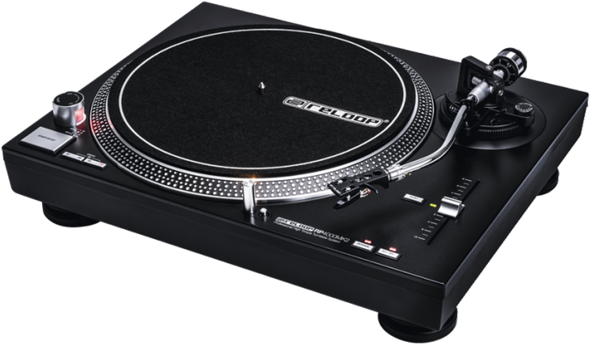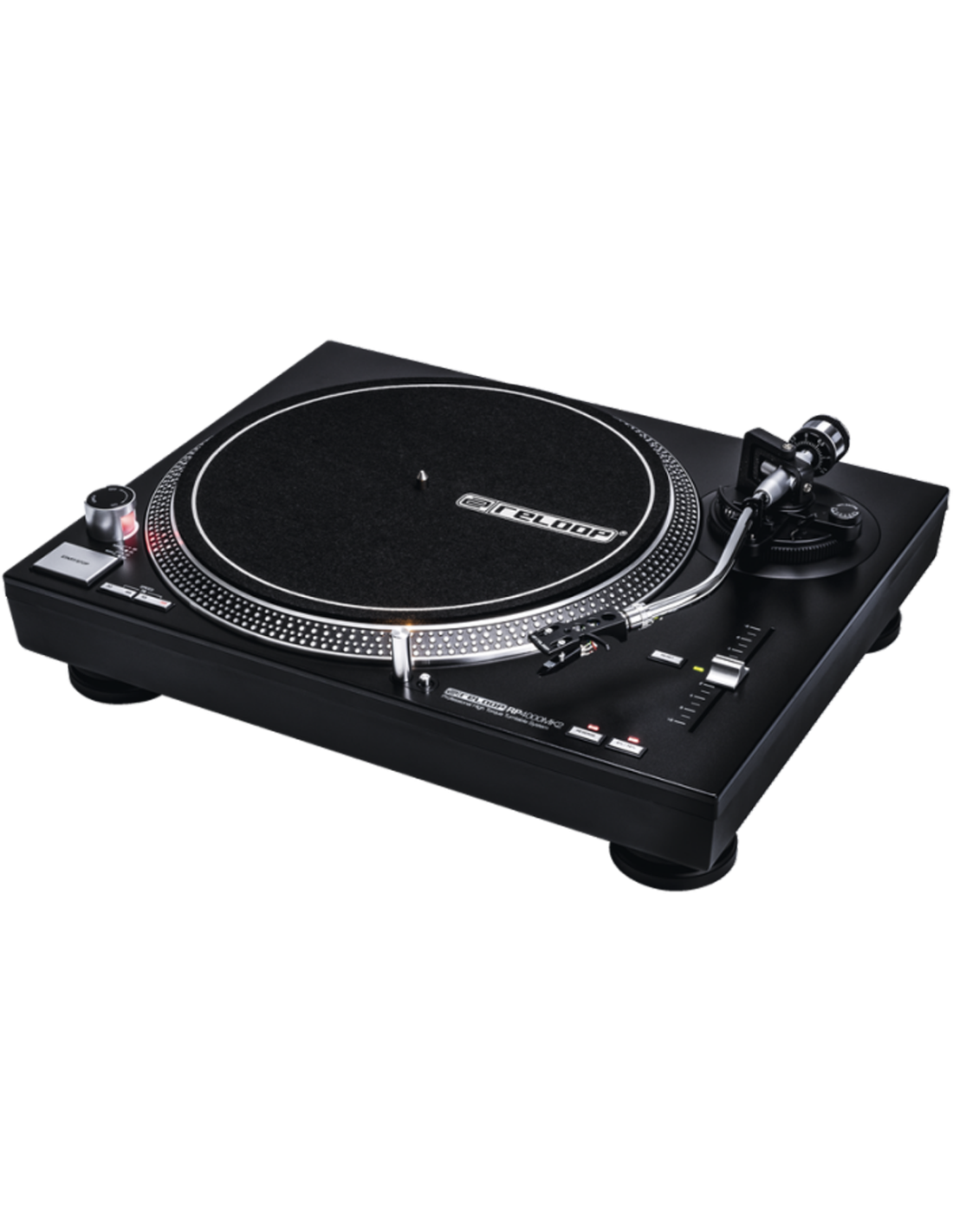 The Reloop RP4000 MK2 is a direct drive manual turntable, color Black. Suitable for DJ and HiFi use. It features an aluminum S-arm with hydraulic lift, static balancing and adjustable antiskating. Universal headrest to SME standard, with OM Black (Ortofon) brush head included. Anti-vibration chassis with insulating feet. High-torque DC motor with three selectable speeds: 33-1/3, 45 and 78 revolutions. Fine speed adjustment up to +/ -8%, +/ -16% and Reset button. Start/Stop button. Electronic brake. Die-cast aluminum plate with anti-slip mat, pilot light and stroboscopic speed display. RCA outputs with Ground terminal, for connection to Phono inputs