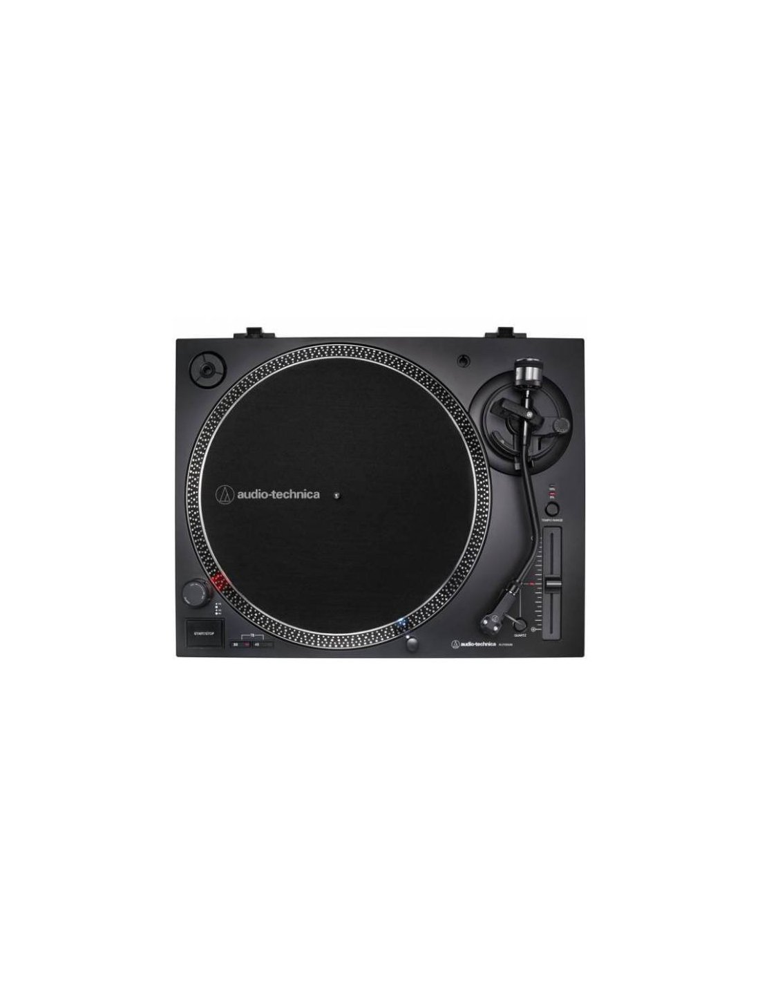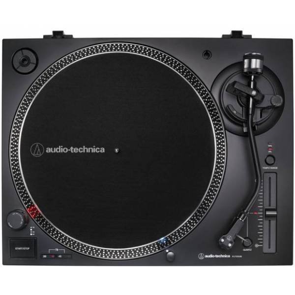 The Audio-Technica AT-LP120X BT USB is a direct drive manual turntable, in black color. Suitable for both DJ and HiFi use. It is equipped with an S-arm, with adjustable counterweight and tracking, AT-H6S universal head shell and AT-VM95E double-magnet MM head with elliptical stylus. Compatible with MC heads. Low noise servo-controlled DC motor, with selectable speeds at 33-1/3, 45 and 78 revolutions. Fine speed adjustment with quartz control, and +/ -10% adjustment slider. Manual operation with hydraulic damping arm lifting and falling mechanism. Chassis made of anti-vibration material. Stroboscopic plate with speed indication, in die-cast aluminum with felt mat. Removable target light to operate in low light conditions. Integrated RIAA Phono preamplifier, selectable for connection to both Phono and Line inputs. RCA outputs and USB output for direct connection to a computer (44.1/48kHz, 16-bit, USB 2.0). Downloadable Audacity software for direct acquisition on PC/Mac. Includes stereo RCA cable, USB cable, adapter for 45 rpm discs and transparent cover. External power supply.