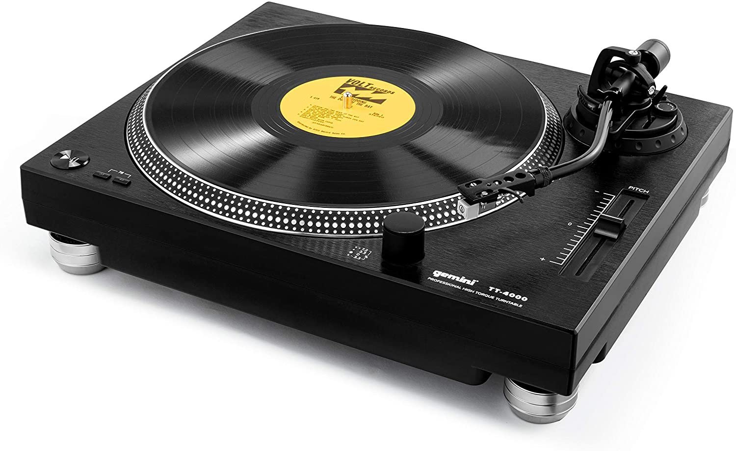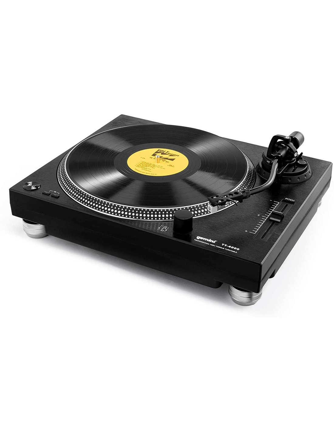 The Gemini TT-4000 is a direct drive manual turntable, in black color. Suitable for DJ use and for HiFi listening. It is equipped with an S-arm with hydraulic lift and anti-skating control, a universal head holder and an Audio-Technica head with an elliptical stylus included. High-torque servo-controlled DC motor, with selectable speeds at 33-1/3, 45 and 78 revolutions. Fine speed control via slider up to +/ -10%, with stroboscopic display. Chassis optimized for vibration damping with anti-shock insulating feet. High-precision die-cast aluminum plate, with mat included. Integrated RIAA Phono preamplifier, selectable for connection to both Phono and Line inputs. RCA outputs. USB output for direct connection to a computer (44.1/48kHz, 16-bit, USB 2.0). Downloadable Audacity software for direct acquisition on PC/Mac. Includes stereo RCA cable, USB cable, adapter for 45 rpm discs and transparent cover