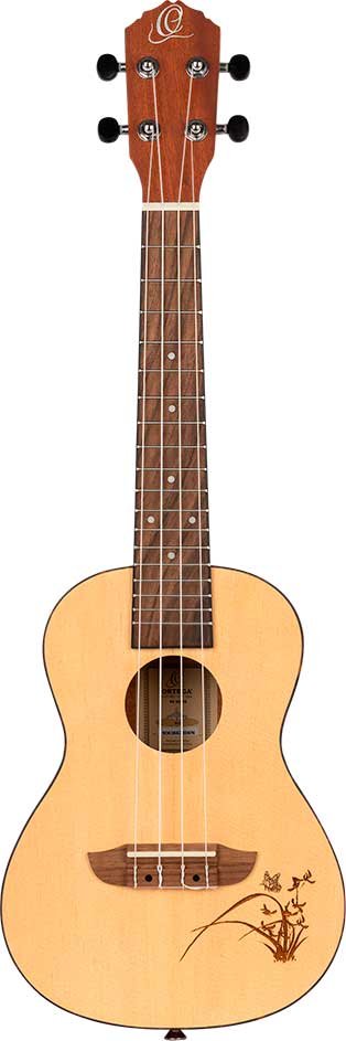 The best-selling Bonfire series features classic Ortega craftsmanship with a touch of style. Available in all standard sizes, with or without electronics, a variety of wood choices and shapes, and with eye-catching laser engraving, there's a Bonfire ukulele for everyone, even left-handed people. A classic, affordable ukulele with distinctive laser engraving and electronics with built-in tuner, spruce top, satin finish, laser-engraved pattern. Sapele back and sides, satin finish Mahogany handle, satin finish Tortoise ABS binding Ortega MagUse electronic walnut keyboard and bridge with tuner Chromed die-cast mechanics, with black pegs Ortega UWNY-4-CC strings