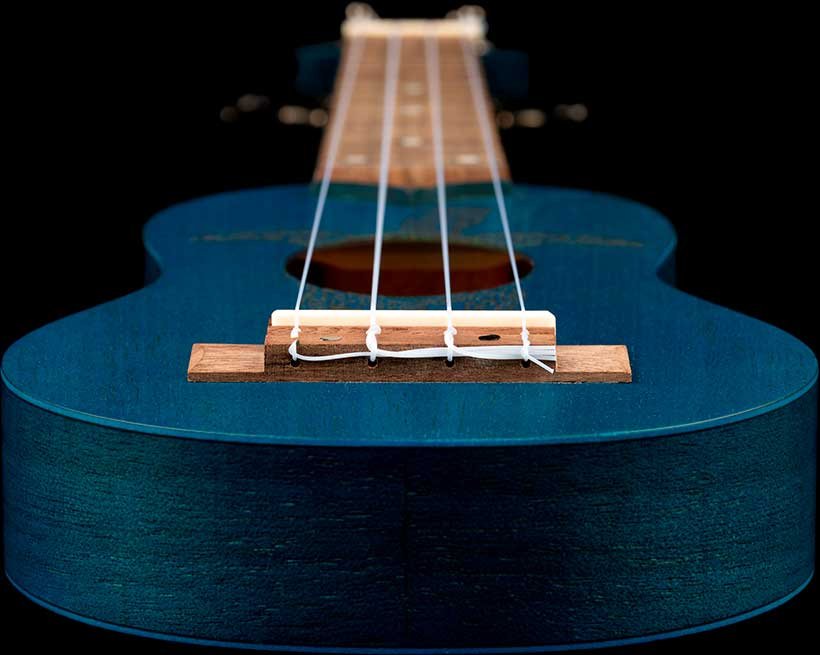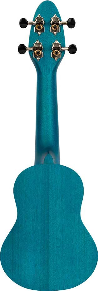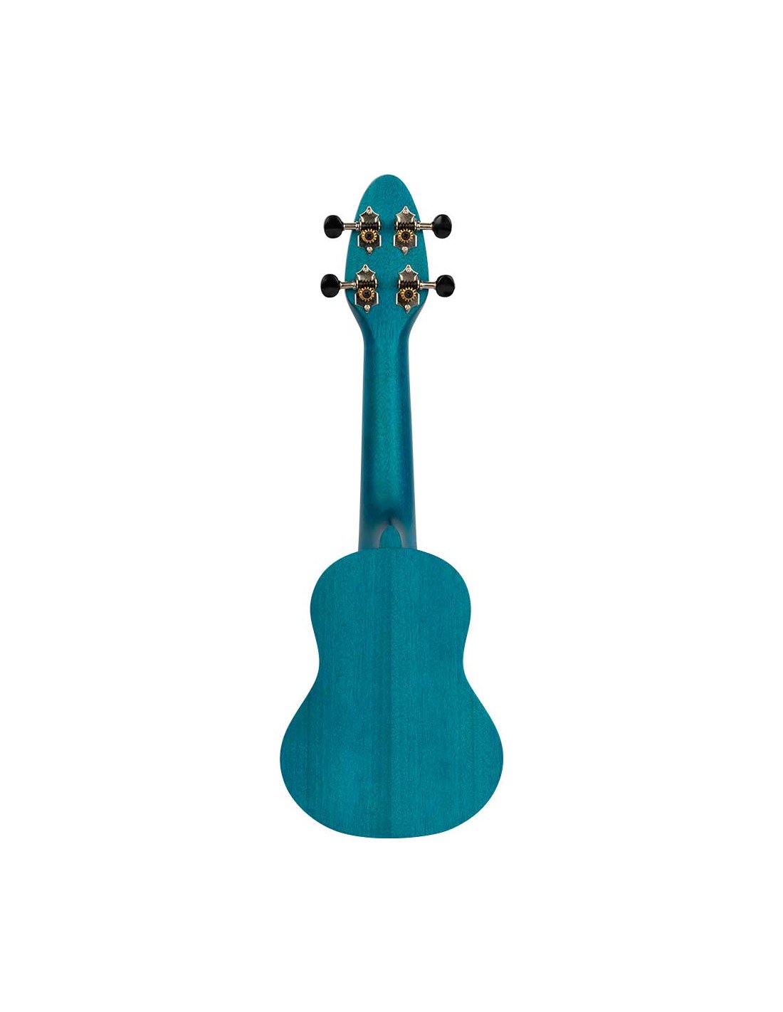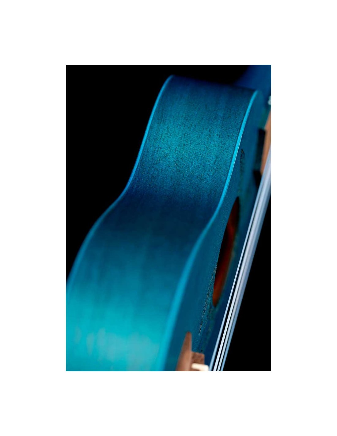 Keiki K1-MM Soprano Ukulele (smaller than the soprano, 248 mm scale). Satin blue finish. Okume body and neck, keyboard and bridge in walnut. Top in okume with laser engraving of a turtle. Black chrome mechanics. It mounts Ortega UWNY--4-SO strings for standard soprano.