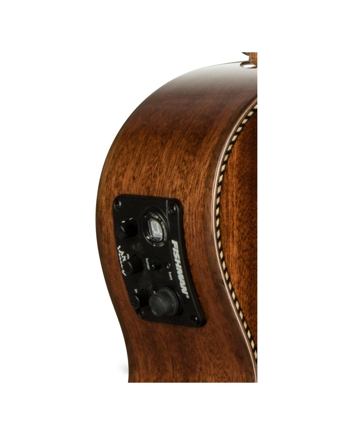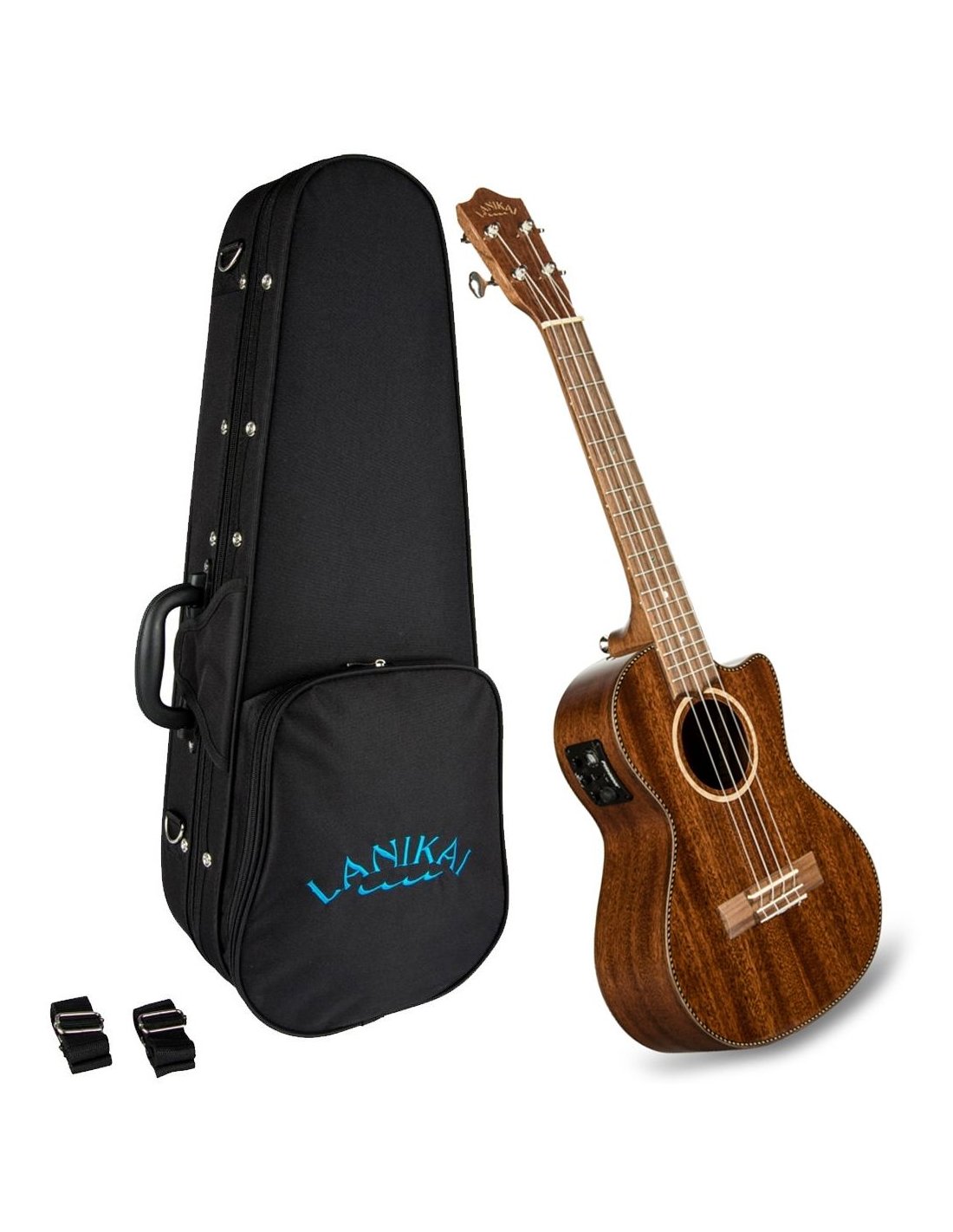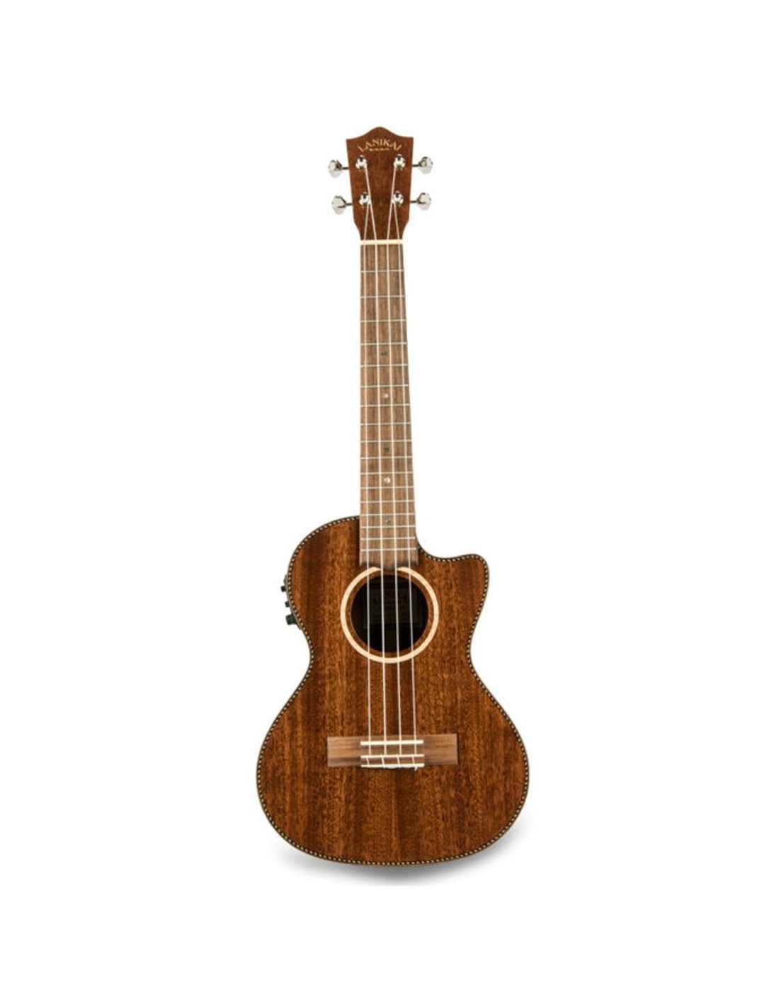 MAS-CET Electrified Tenor Ukulele Solid Mahogany Body Mahogany Neck Mahogany Nut Fingerboard and Bridge Walnut Binding Graphtech Nubone Head Width 37.4mm Scale: 378mm 18 Keys Pickup Fishman Kula Strings D'addario J88 Natural High Gloss Finish Bag included