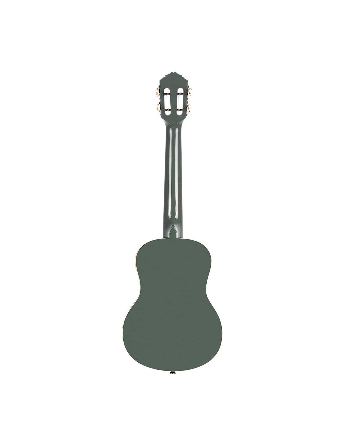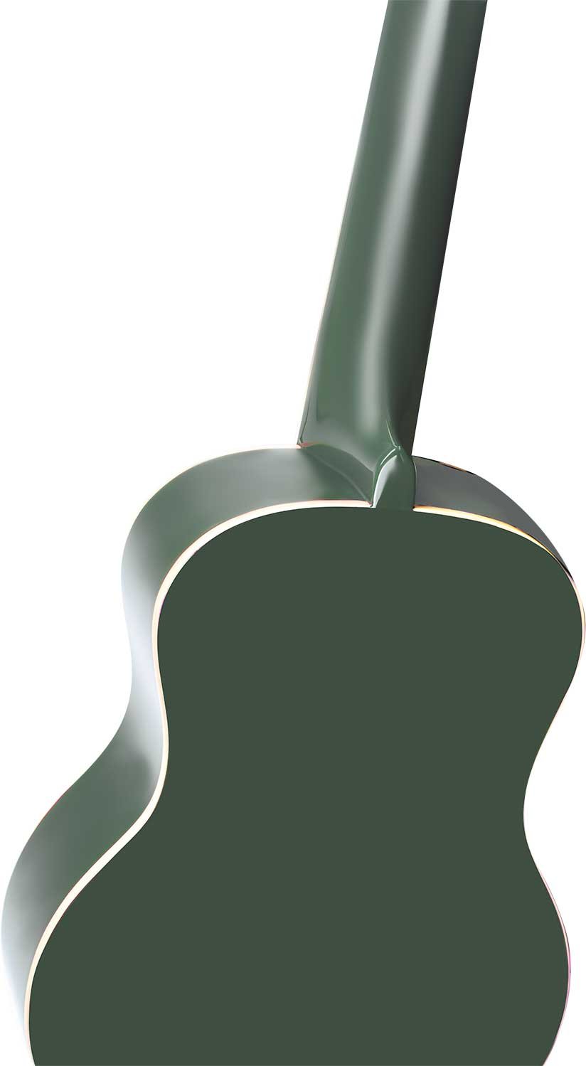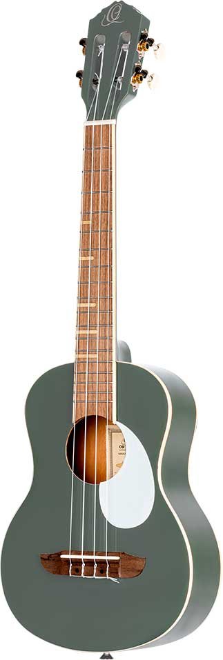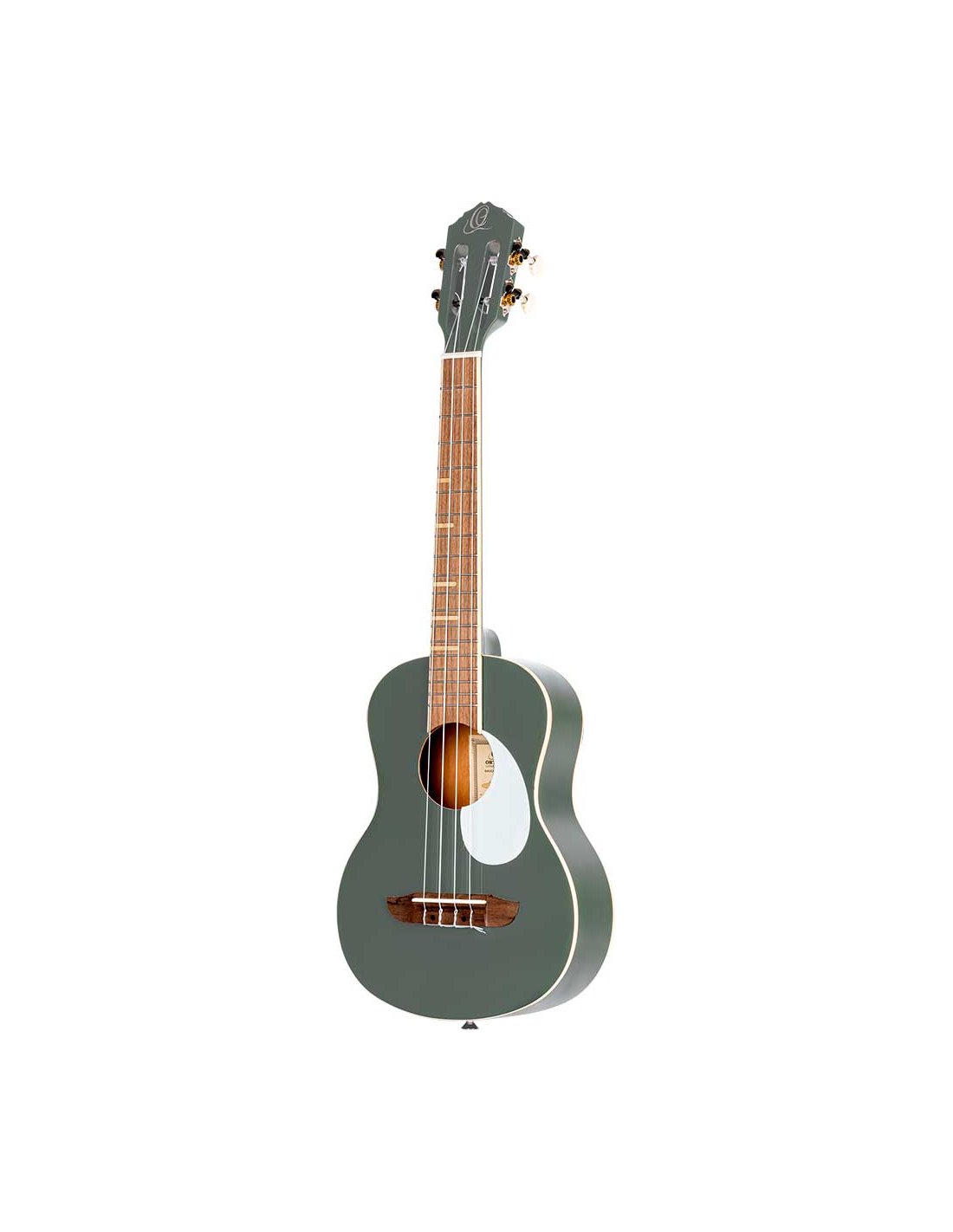 RUGA-PLT Tenor Ukulele from the Gaucho series. Agathis top in bright platinum gray. Back and sides: Agathis. Ivory ABS binding. Shiny Okoumé handle. Classic style tuner with okoume foil. Walnut keyboard and bridge. Maple keyboard inlays. Chromed mechanics with white wing nut. White teardrop pickguard. Bag included with colorful details to match the finish of the ukulele.