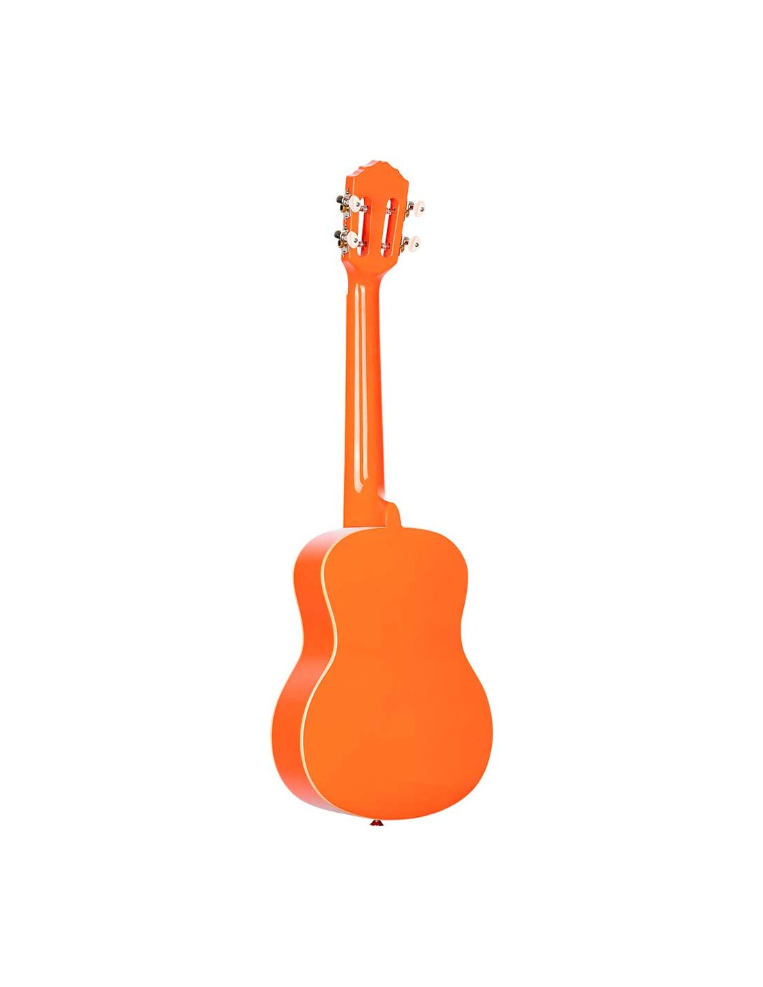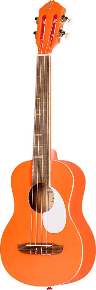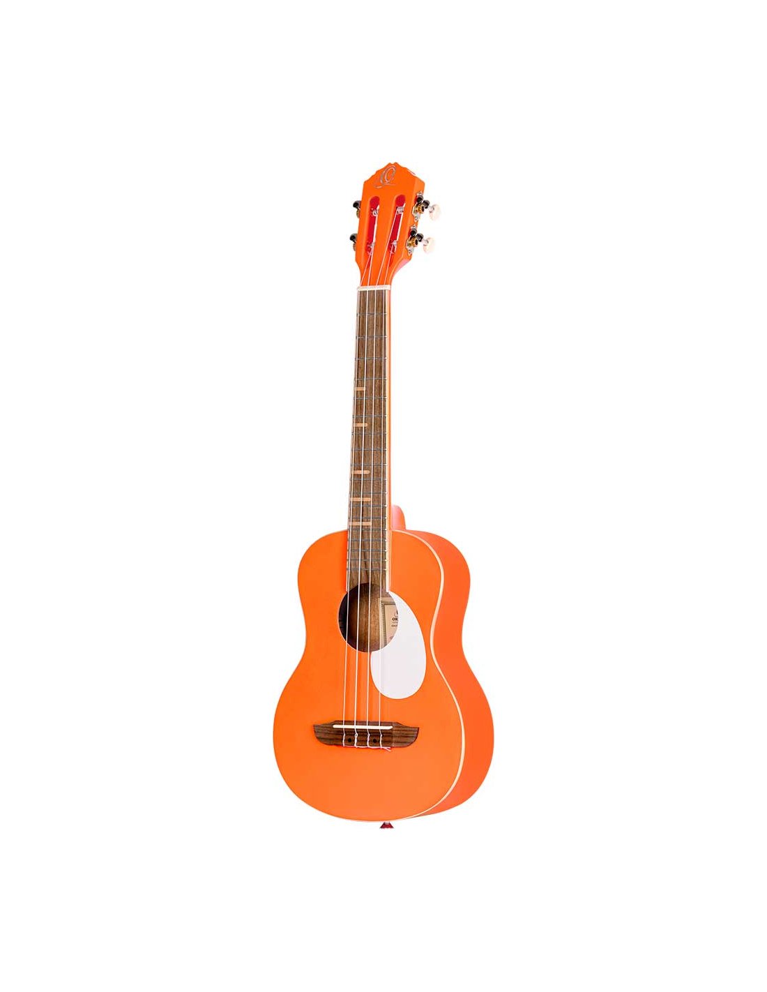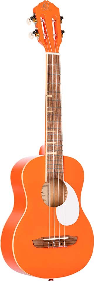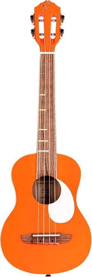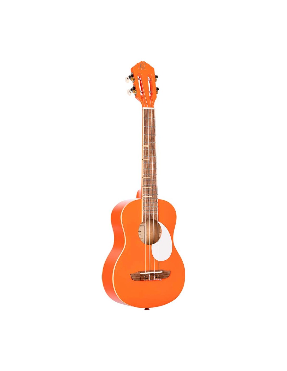 RUGA-ORG Tenor Ukulele from the Gaucho series. Bright orange agathis top. Back and sides: Agathis. Ivory ABS binding. Shiny Okoumé handle. Classic style tuner with okoume foil. Walnut keyboard and bridge. Maple keyboard inlays. Chromed mechanics with white wing nut. White teardrop pickguard. Bag included with colorful details to match the finish of the ukulele.