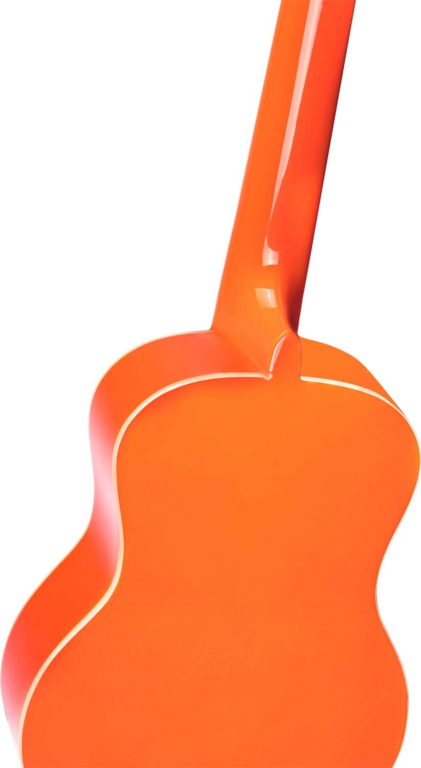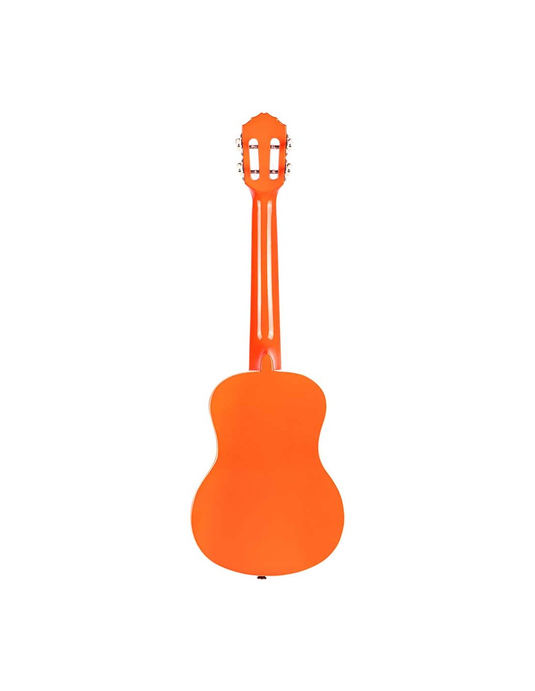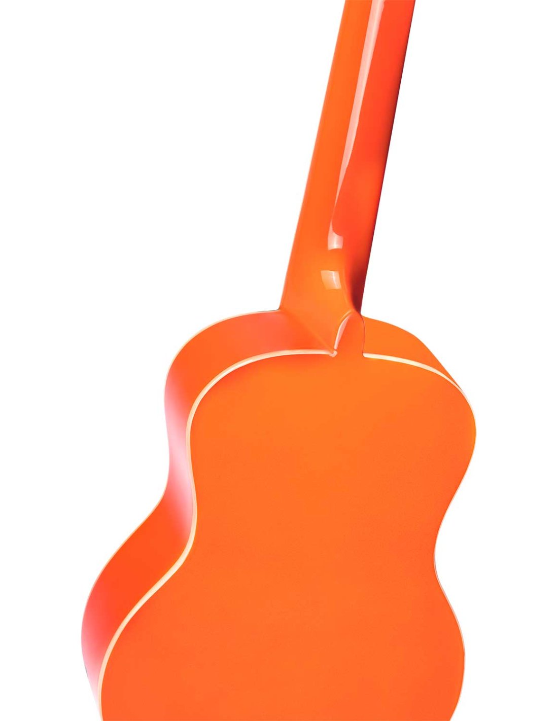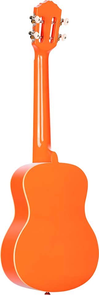 RUGA-ORG Tenor Ukulele from the Gaucho series. Bright orange agathis top. Back and sides: Agathis. Ivory ABS binding. Shiny Okoumé handle. Classic style tuner with okoume foil. Walnut keyboard and bridge. Maple keyboard inlays. Chromed mechanics with white wing nut. White teardrop pickguard. Bag included with colorful details to match the finish of the ukulele.
