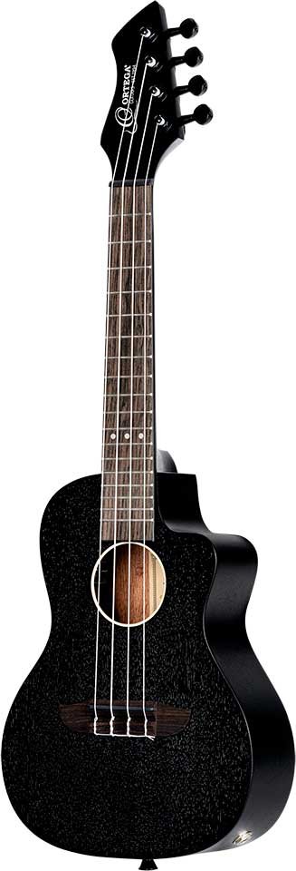 'RUHZ-CE-SBK Horizon Series Electrified Concert Ukulele. Mahogany body, mahogany top, okoume neck, tecwood fingerboard and bridge. Satin finish in black. Inverted 'metal' style blade. Black ABS binding on body and neck. 376 mm scale. MagusUke electronics with tuner. '