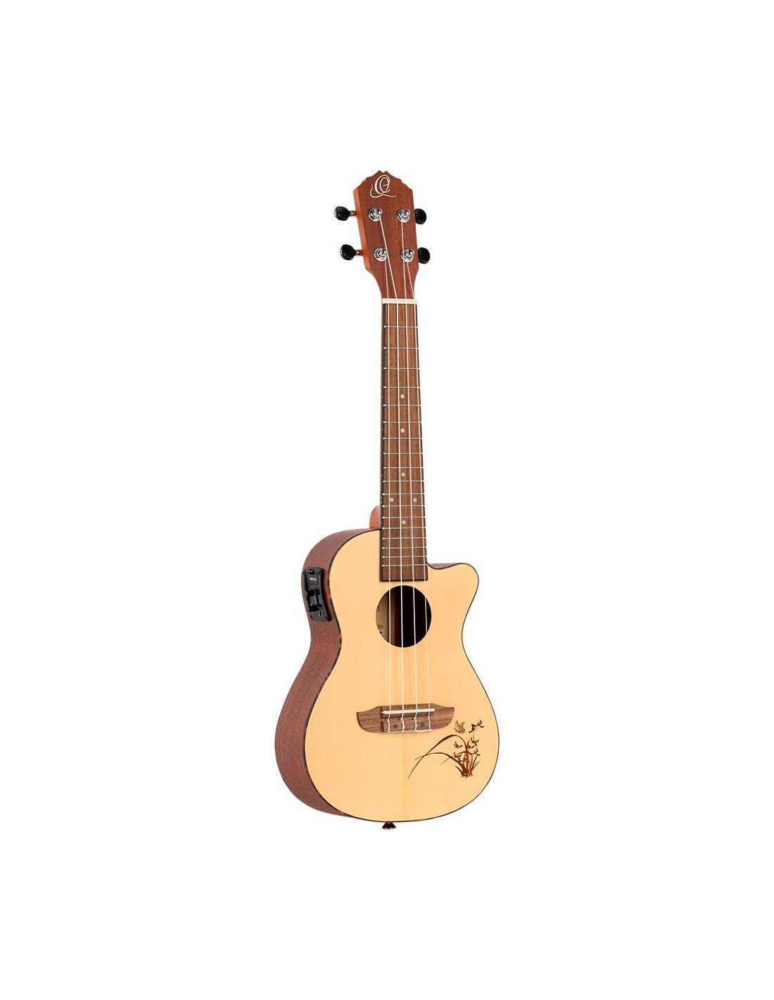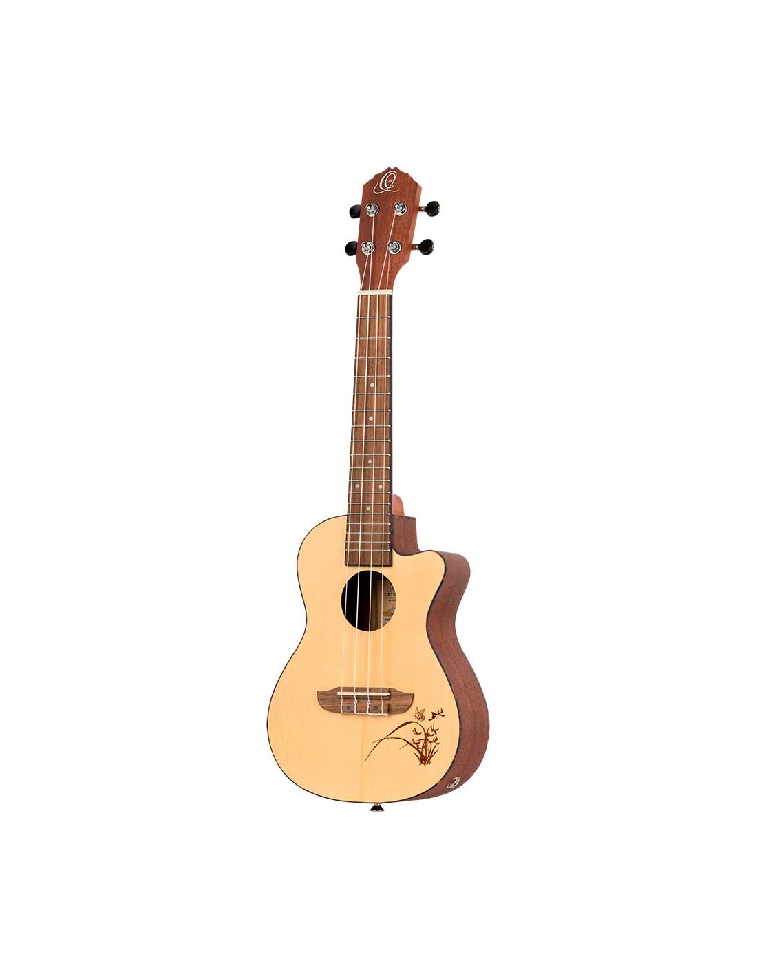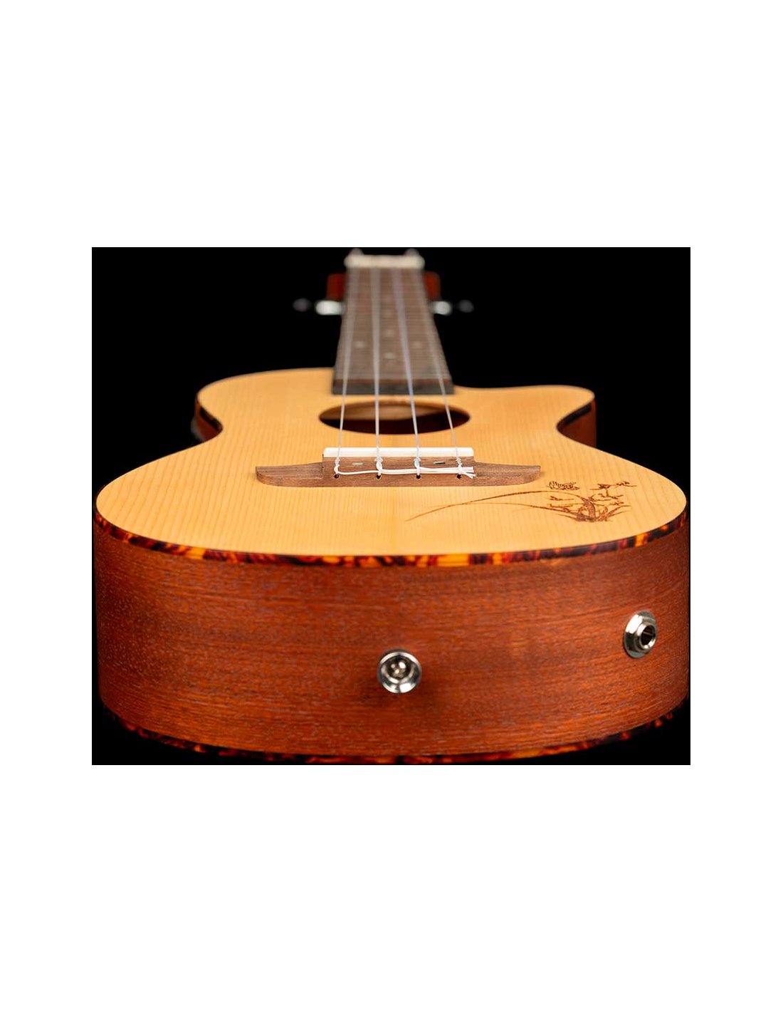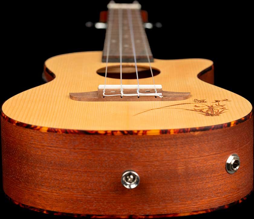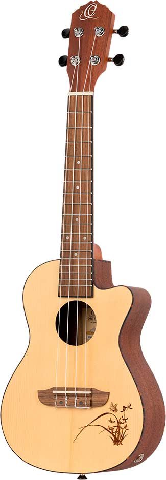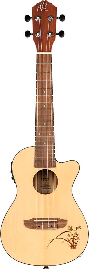 The best-selling Bonfire series features classic Ortega craftsmanship with a touch of style. Available in all standard sizes, with or without electronics, a variety of wood choices and shapes, and with eye-catching laser engraving, there's a Bonfire ukulele for everyone, even left-handed people. A classic, affordable ukulele with distinctive laser engraving and electronics with built-in tuner, spruce top, satin finish, laser-engraved