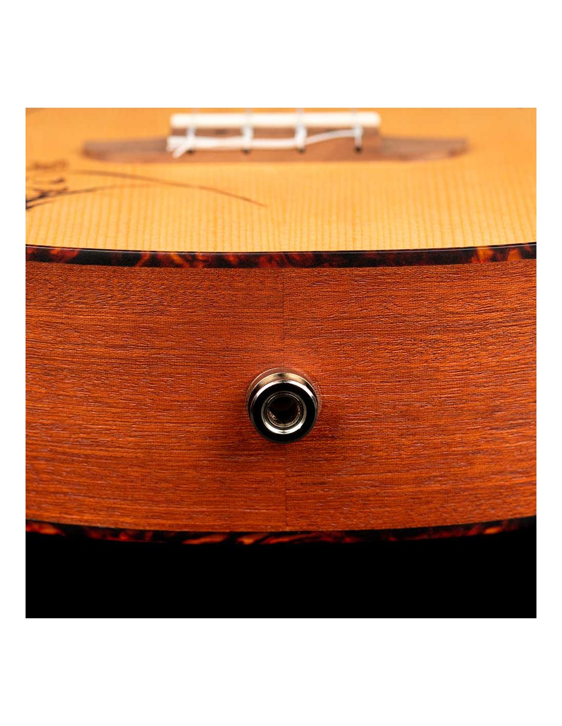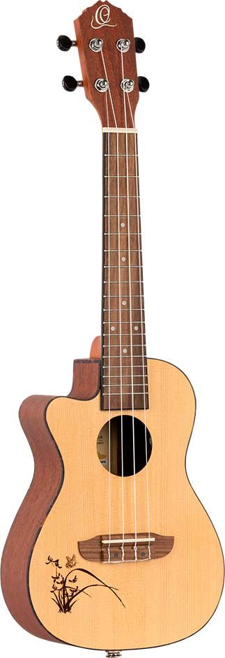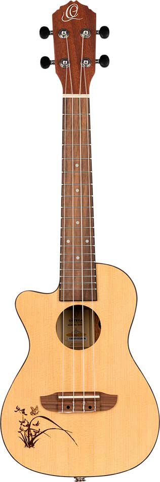 ZURDO electric acoustic cutaway concert ukulele. Spruce top, sapele bands and bottom. Mahogany neck, Sonokelin fingerboard. Diecast mechanics. Ortega Magus Uke Go electronics.