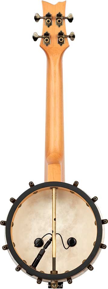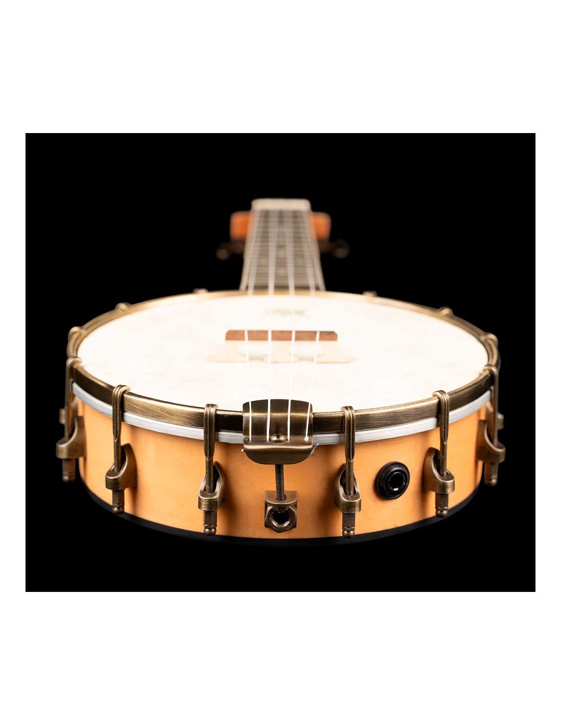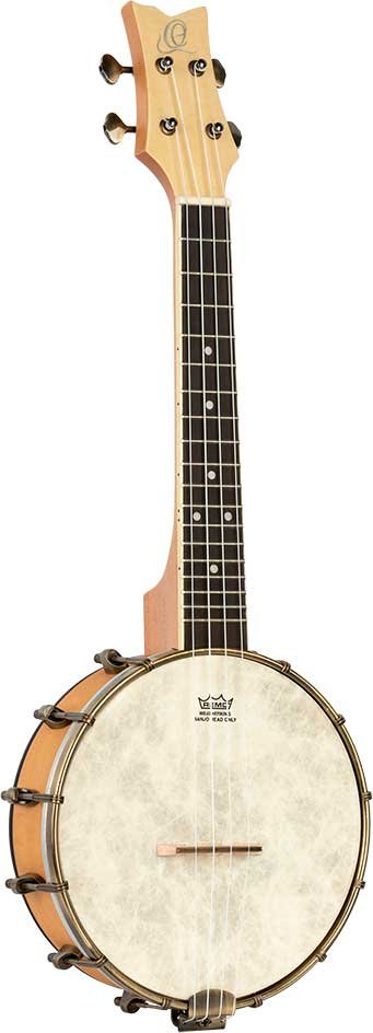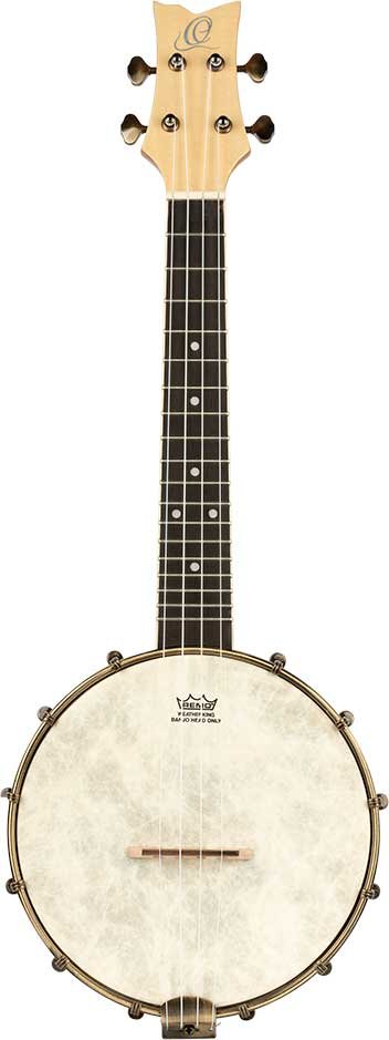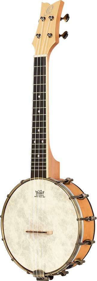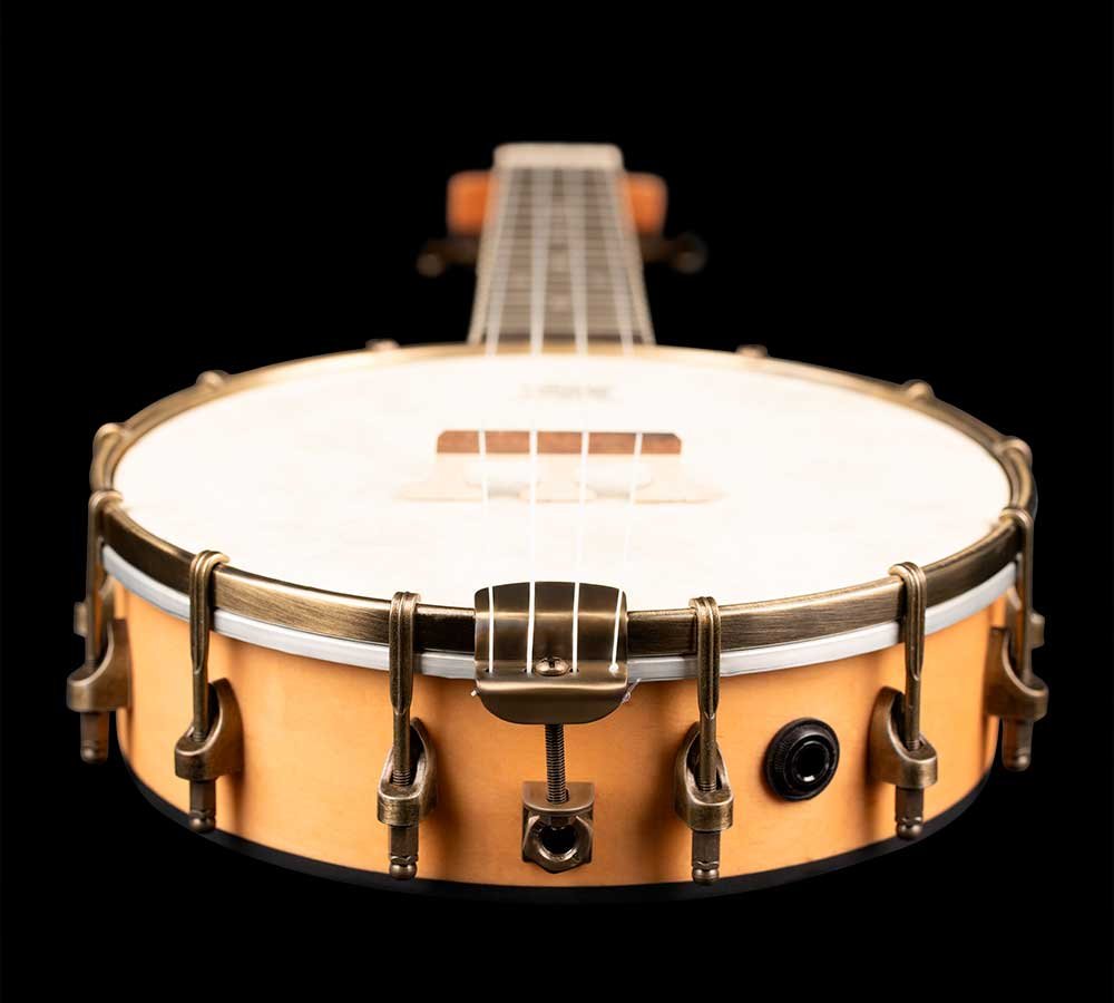 Concert Size Banjo-Ukulele. Ukulele with a banjo body that mixes the sound of both instruments. Made from maple, with brass hardware, natural finish and open back.