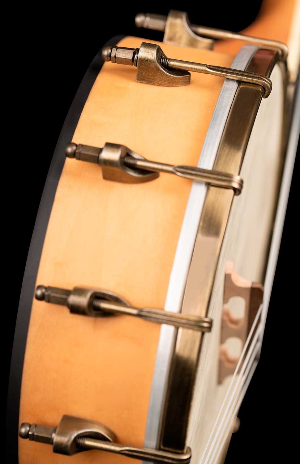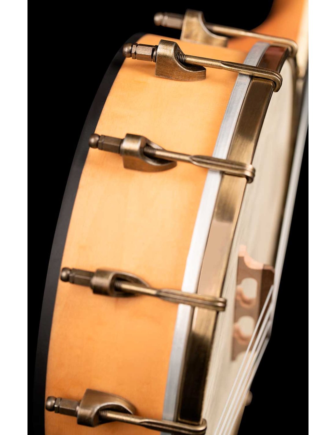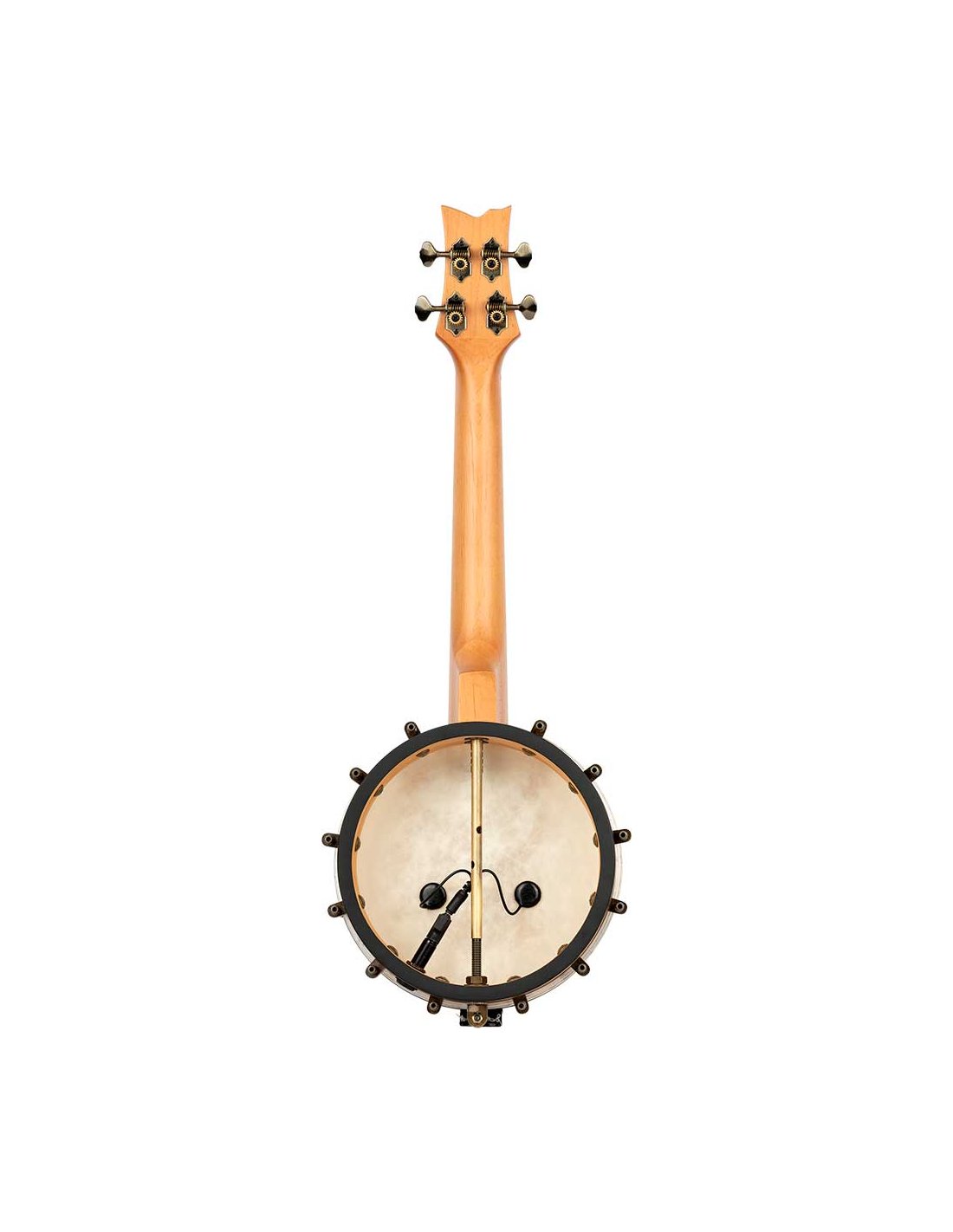 Concert Size Banjo-Ukulele. Ukulele with a banjo body that mixes the sound of both instruments. Made from maple, with brass hardware, natural finish and open back.