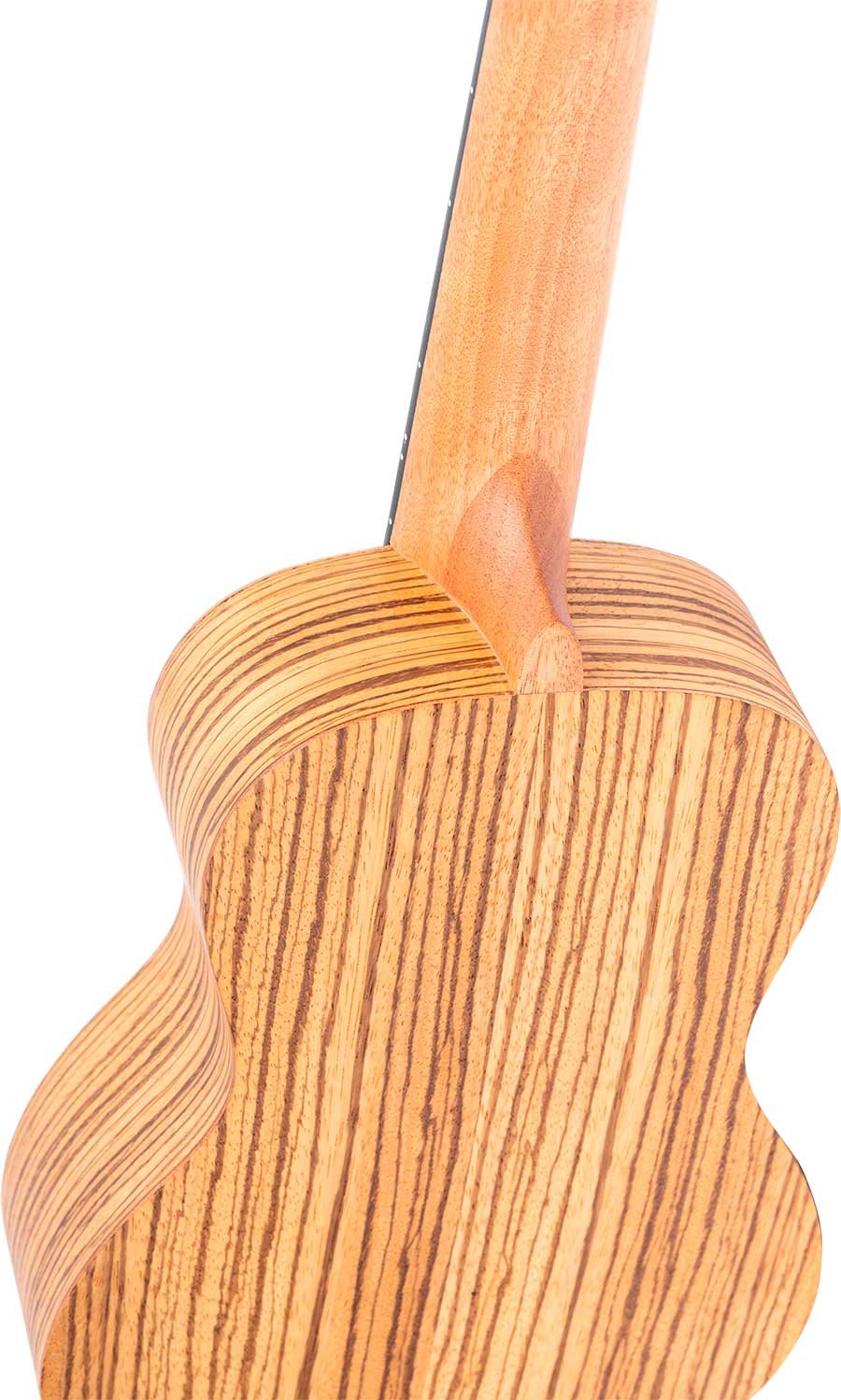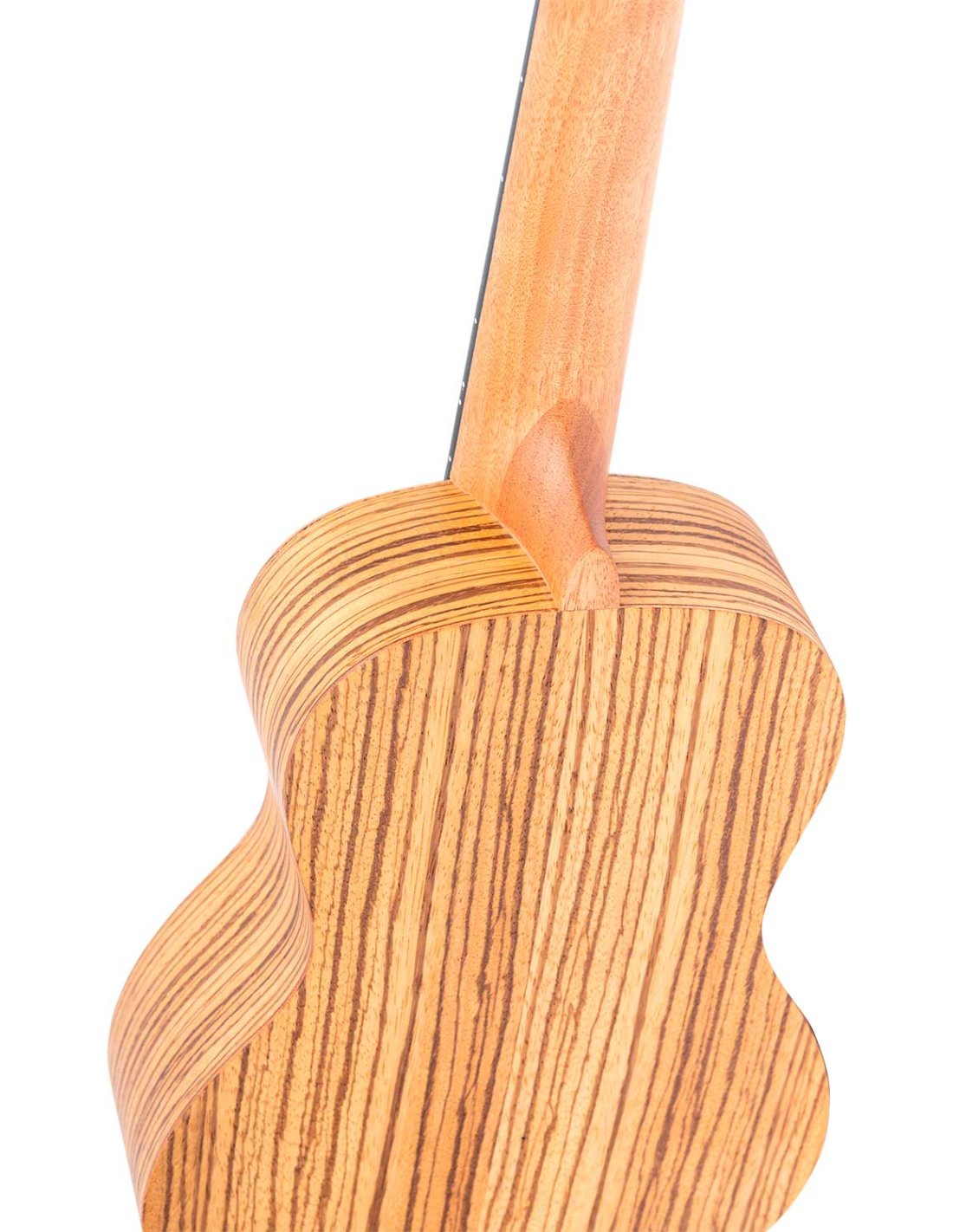 Concert ukulele for MANCINI. Spruce top, zebrano bands and bottom. Mahogany neck, Sonokelin fingerboard. Diecast mechanics. Preamp Ortega Magus pro. Deluxe bag included.