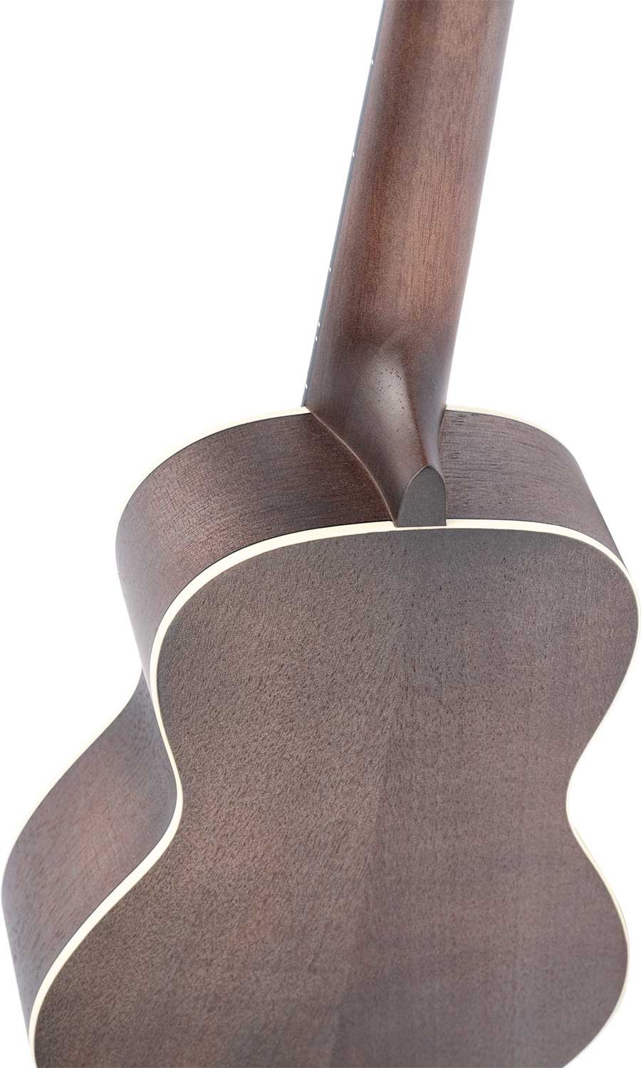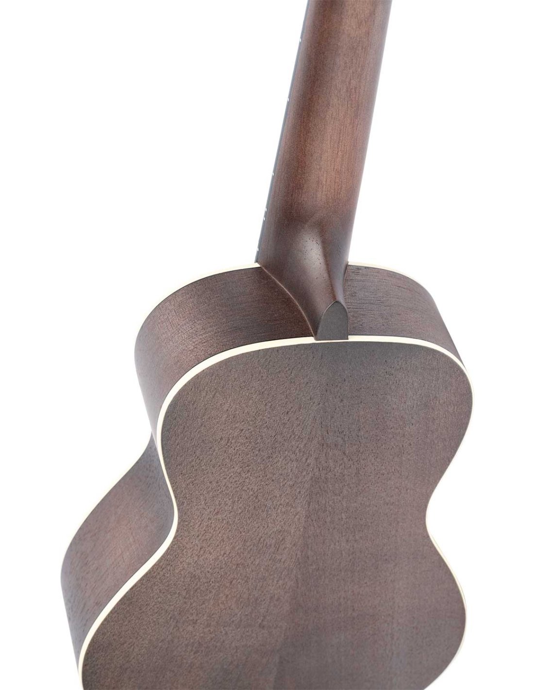 Ukulele for MANCINI concert. Okume top, bands and bottom. Mahogany neck with Sonokelin fingerboard. Transparent matt black finish.
