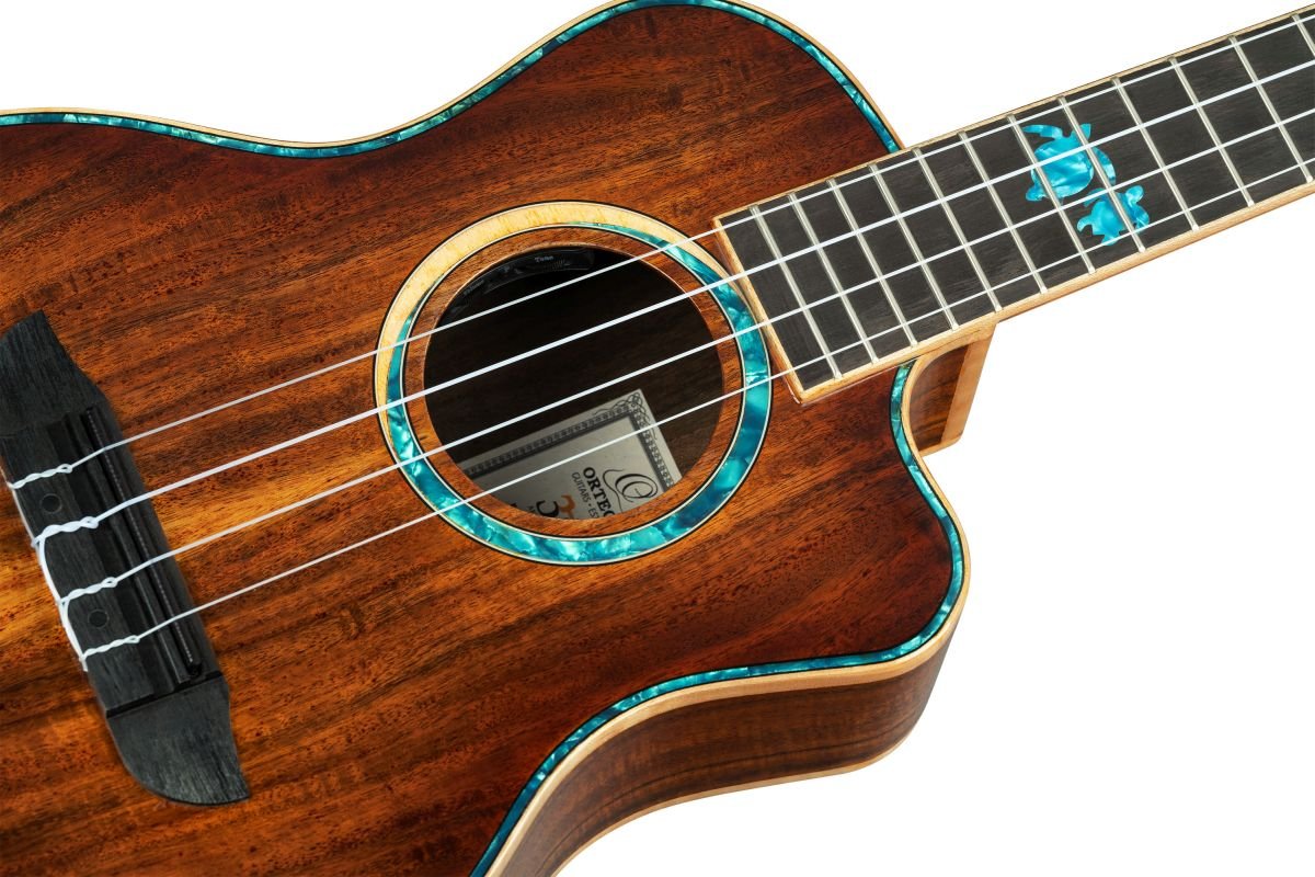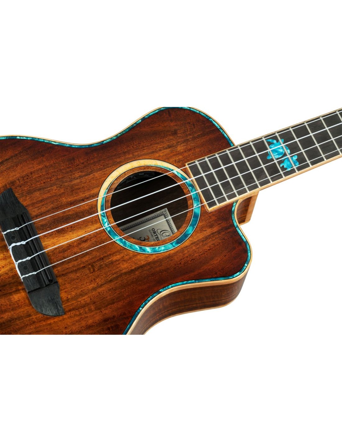 'To celebrate the 30th anniversary of Ortega Guitars, we are proud to present four tenor ukuleles, meticulously handcrafted from AAA solid acacia wood. These limited-edition ukuleles feature attractive marine life inlays on the 5/12 key, showing dolphins, blue whales, jellyfish and sea turtles, paying homage to the wonders of nature. Each ukulele comes with a professional 30th anniversary case included. Celebrate with us and experience the beauty and precision of these limited-edition punching tools. Size: tenor. Nut width: 35 mm (1.38”). Scale: 430 mm (16.93”). Tenor size Marine life incrustations Limited edition top: AAA Solid Acacia Wood, glossy finish Retro and bands: AAA Solid Acacia Wood, glossy finish Style: mahogany, glossy finish Keyboard and bridge:... Bathroom electronics: Magusfly/u Rechargeable mouth preamp system Paddle: 4 inch paddle plate in inverted line: Acacia, glossy finish Binding: Top and bottom in flamed maple Top edge blue pearl blue pearl/maple mouth Rosetta Blue Pearl, Blue Pearl/Sea Turtle, Sea Turtle Inlays: 430 mm (16.93") Nut width: 35 mm (1.38") 30th anniversary bag including ORTEGA2024'