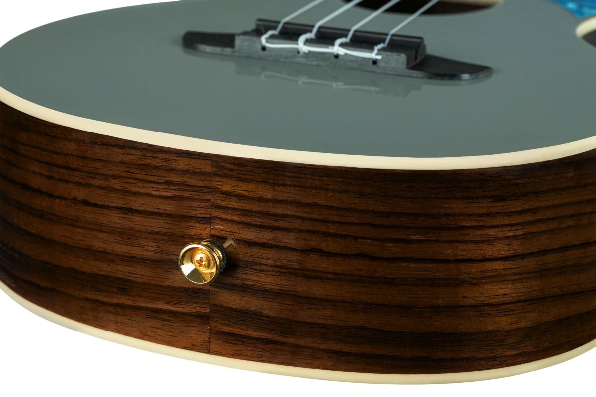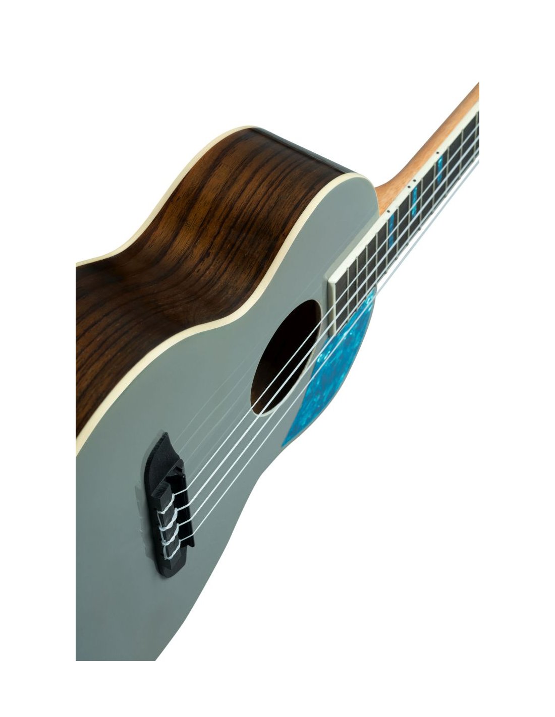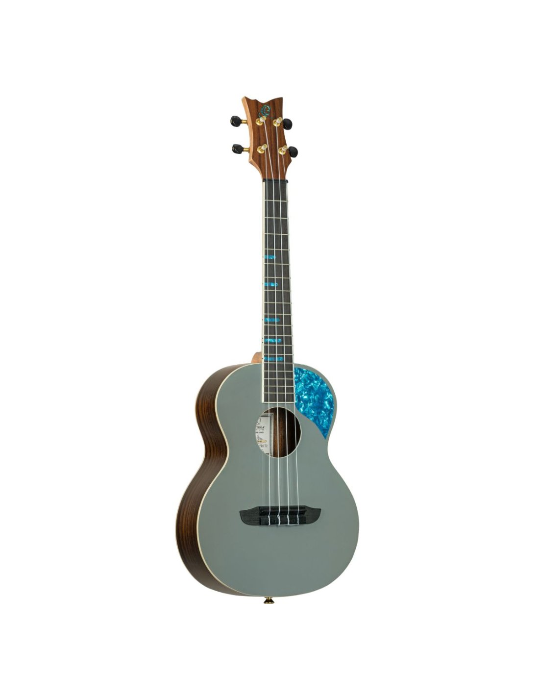 'The GHOST SERIES ukulele by Ortega Guitars fascinates with its eye-catching polished top. The colored tops (black, ocean, red t and platinum) harmonize beautifully with the glossy finish of the rosewood bottom and sides. In particular, this ukulele features gorgeous blue pearl “bar” inlays and a blue pearl pickguard, which add a touch of elegance to its look. The rosewood headstock plate completes the overall aesthetic and completes the beautiful design of the instrument. The Gost series instruments come with the Ortega Guitars professional case. Size: tenor Nut width: 35 mm (1.38”). Scale: 430 mm (16.93”). Table tenor size: Solid spruce, glossy finish Finish: Platinum Back and sides: Rosewood, Polished finish Style: Mahogany, Satin finish Palette plate: Rosewood, Polished finish Keyboard and bridge: Rosewood Binding: white ABS Nut and saddle: black ABS Inlays” pearl blue Pickguard “GHOST” Pearl Blue Pearl Logo Arched Back Strap Pin, Gold Scale: 430 mm (16.93”) Cap Width: 35 mm (1.38”) Professional Briefcase included ORTEGA2028 4'
