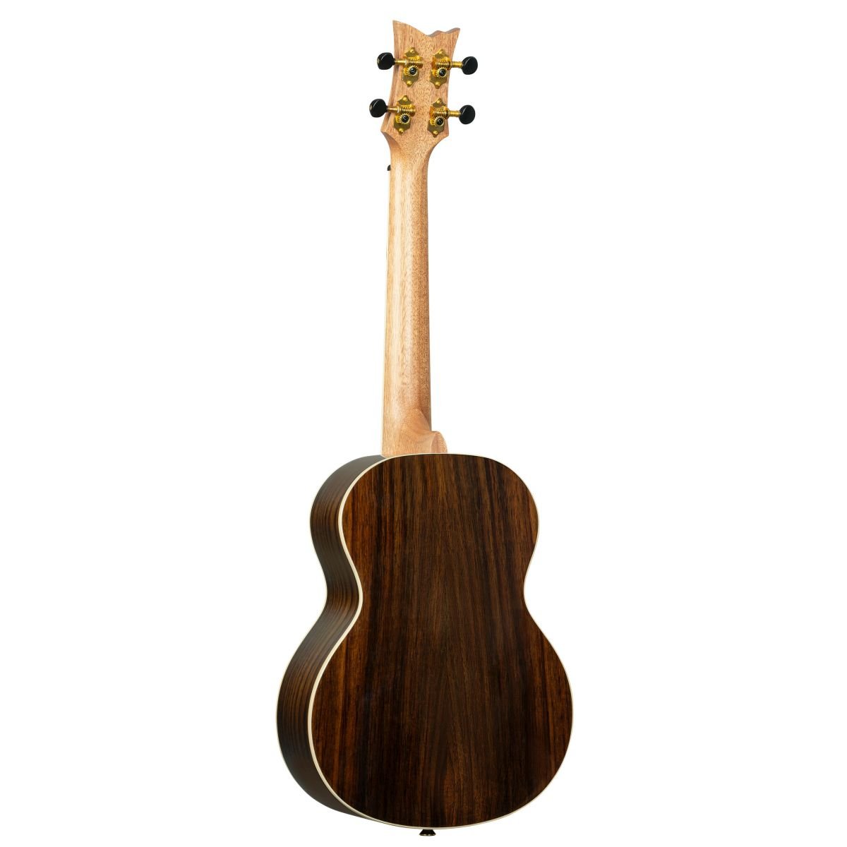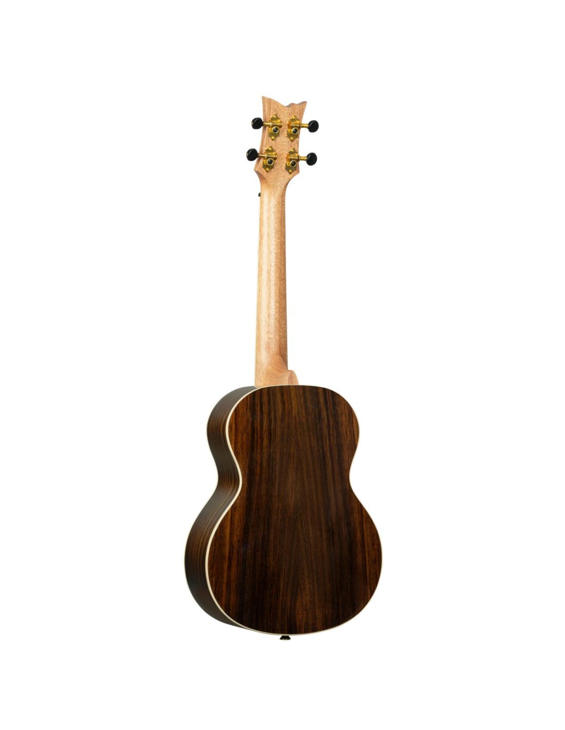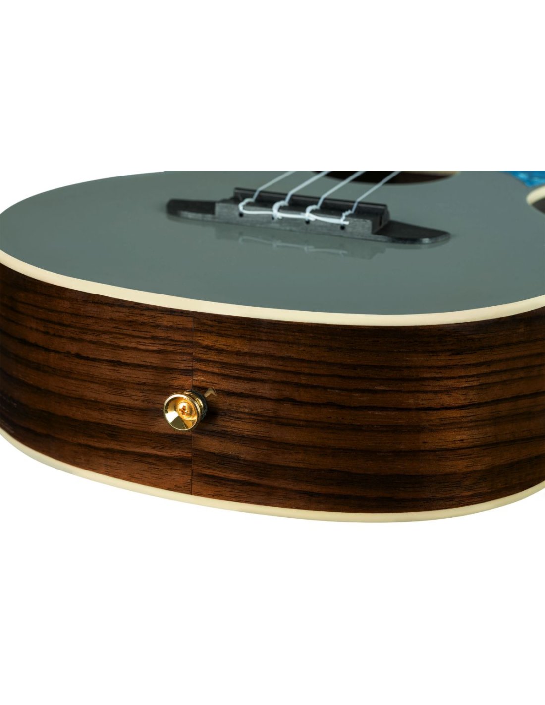'The GHOST SERIES ukulele by Ortega Guitars fascinates with its eye-catching polished top. The colored tops (black, ocean, red t and platinum) harmonize beautifully with the glossy finish of the rosewood bottom and sides. In particular, this ukulele features gorgeous blue pearl “bar” inlays and a blue pearl pickguard, which add a touch of elegance to its look. The rosewood headstock plate completes the overall aesthetic and completes the beautiful design of the instrument. The Gost series instruments come with the Ortega Guitars professional case. Size: tenor Nut width: 35 mm (1.38”). Scale: 430 mm (16.93”). Table tenor size: Solid spruce, glossy finish Finish: Platinum Back and sides: Rosewood, Polished finish Style: Mahogany, Satin finish Palette plate: Rosewood, Polished finish Keyboard and bridge: Rosewood Binding: white ABS Nut and saddle: black ABS Inlays” pearl blue Pickguard “GHOST” Pearl Blue Pearl Logo Arched Back Strap Pin, Gold Scale: 430 mm (16.93”) Cap Width: 35 mm (1.38”) Professional Briefcase included ORTEGA2028 4'