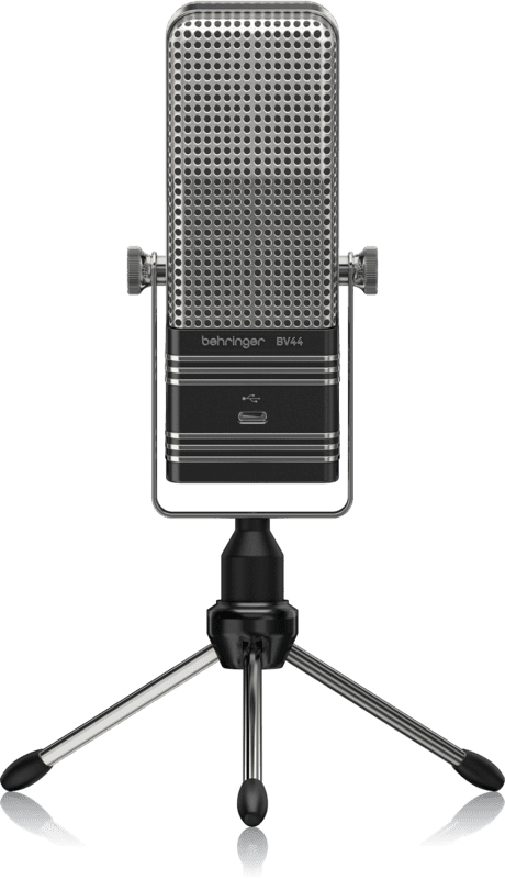 BEHRINGER BV44 is a cardioid USB condenser microphone for broadcasting, inspired by the classic Type 44 from the 1940s. It features exceptional frequency response and very high sound resolution, ultra-low latency ASIO driver for PC audio optimization available on behringer.com, tripod table stand for unlimited positioning, integrated noise reduction circuit, die-cast metal chassis. Includes shielded USB cable
