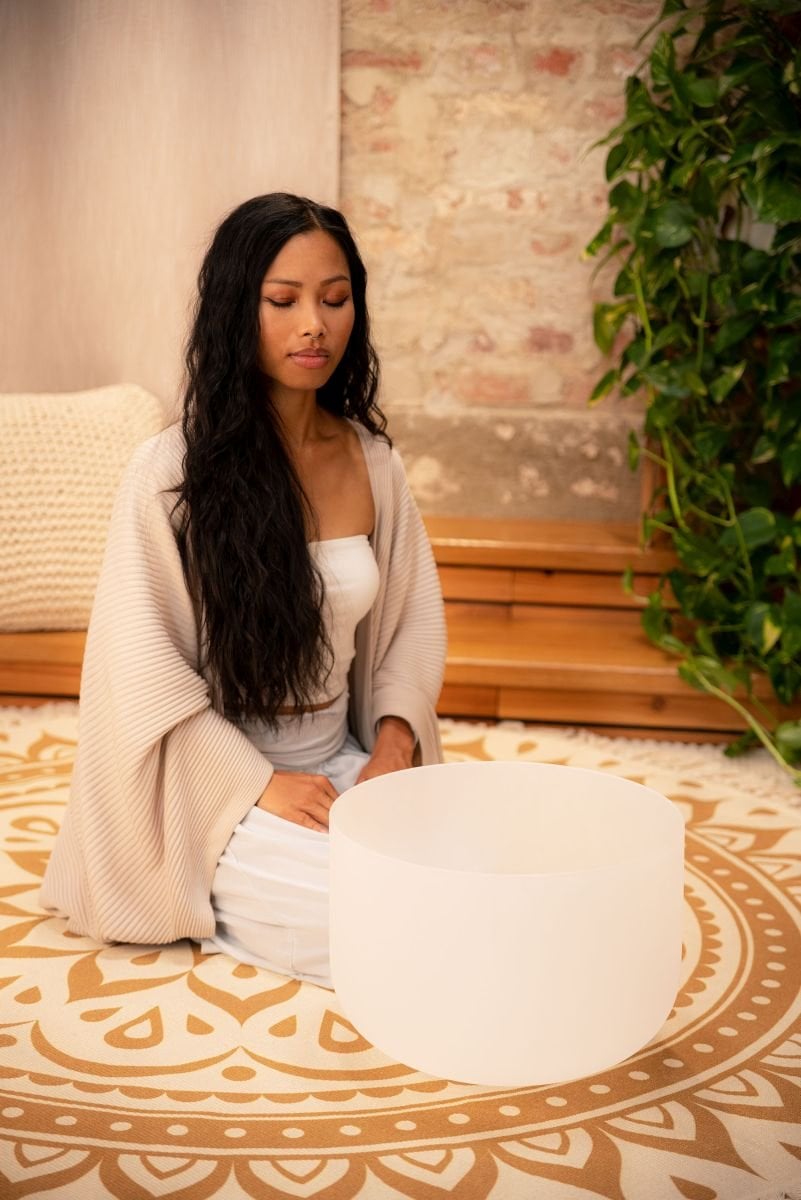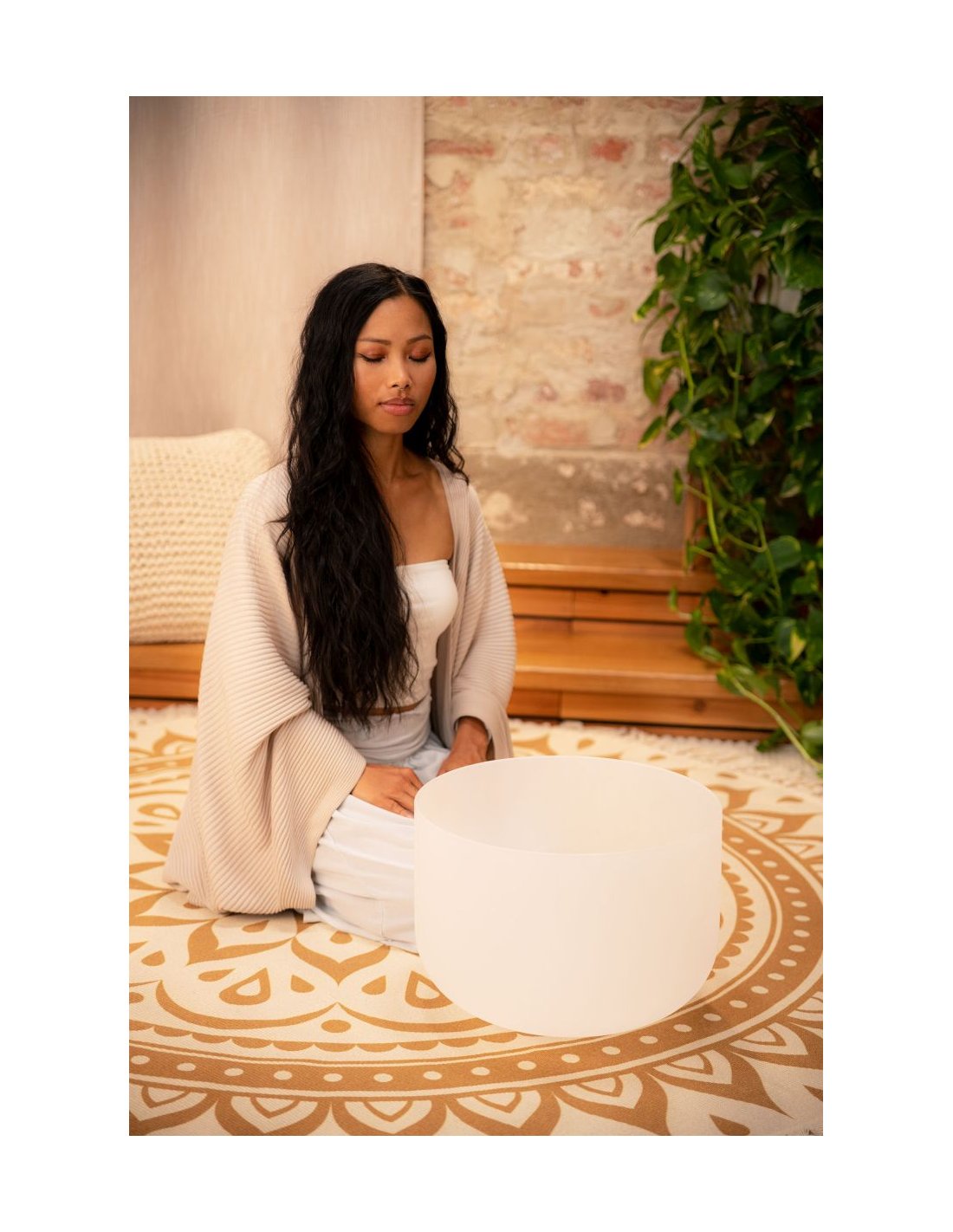 'The Tibetan Meinl Sonic Energy Crystal Singing Bowl bells made of high purity quartz create a very pleasant aura with their sound and design. The long-lasting spherical tone spreads when the Tibetan bell is gently tapped or rubbed so that the energy can be felt throughout the surrounding environment. All Tibetan crystal bells are delivered with a silicone ring to avoid possible shocks and ensure the best resonance. You can use Tibetan crystal bells for a variety of purposes: chakra healing, meditation, sound therapy, yoga, improving your Fengshui home, regulating your emotional state, or even to decorate a room. Diameter: 14" Note: G3 (Sol3) >/br>Throat chakra'