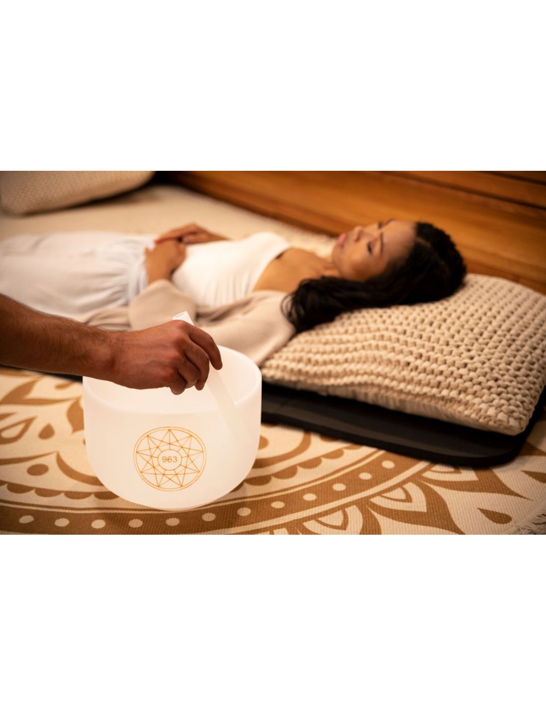 The Meinl Sonic Energy Solfeggio Crystal Tibetan bells are made using ancient frequencies. Solfeggio frequencies are vibrations of sounds that are said to have a healing and health-promoting effect on our body, mind and soul. Already in ancient times, these frequencies were known and used for the treatment of physical and psychological illnesses. For example, the monks used these historic frequencies in their Gregorian choirs and saw a healing effect in the transmission of vibrations to the body. These white frosted Tibetan bells made of high purity quartz create a very pleasant aura with their sound and design. Their long-lasting spherical tone spreads when the Tibetan bell is gently tapped or rubbed so that the energy can be felt throughout the surrounding environment. All crystal bells are equipped with a silicone ring to avoid possible shocks and ensure the best resonance. You can use crystal bells for a variety of purposes: chakra healing, meditation, sound therapy, yoga, improving the Fengshui of your home, regulating your emotional state or for decoration. Frequency: 963Hz: the frequency of divine harmony. Listening to this frequency promotes a sense of community and belonging.