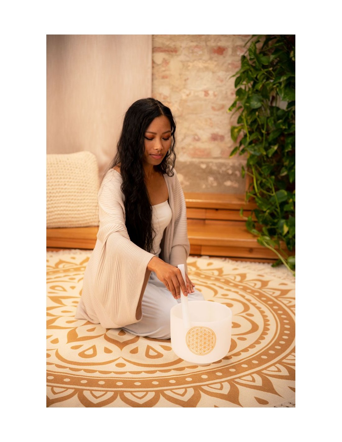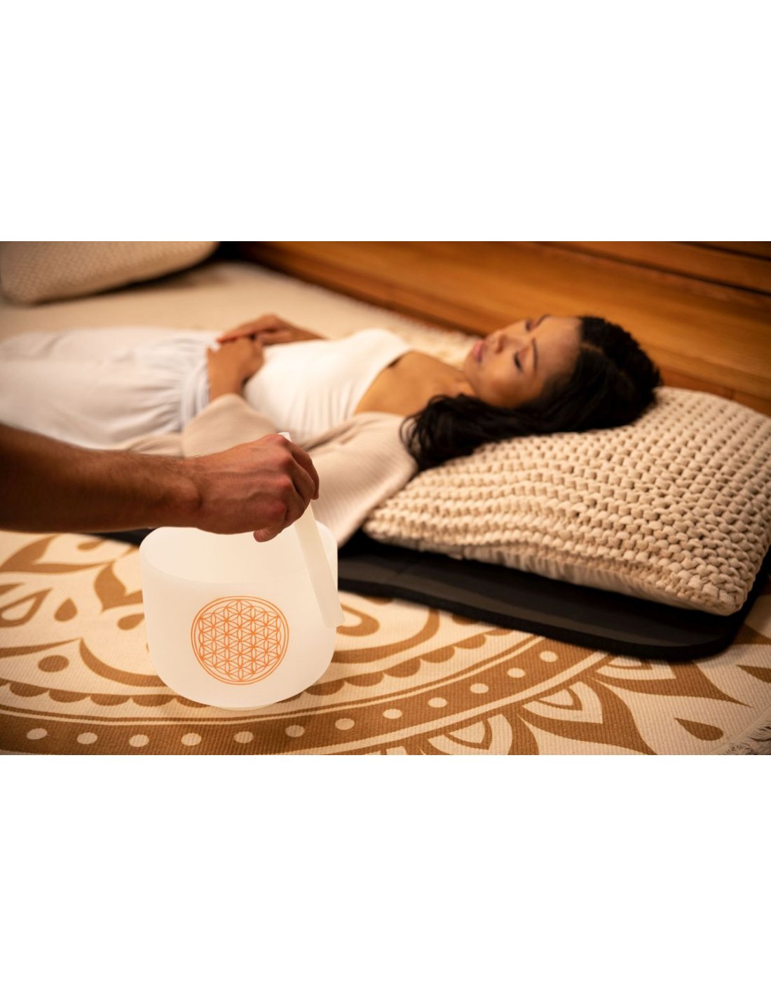 The Tibetan Meinl Sonic Energy Crystal Singing Bowl bells made of high purity quartz create a very pleasant aura with their sound and design. The long-lasting spherical tone spreads when the Tibetan bell is gently tapped or rubbed so that the energy can be felt throughout the surrounding environment. All Tibetan crystal bells are delivered with a silicone ring to avoid possible shocks and ensure the best resonance. You can use Tibetan crystal bells for a variety of purposes: chakra healing, meditation, sound therapy, yoga, improving your Fengshui home, regulating your emotional state, or even to decorate a room. Flower of life frequency: 128 Hz a sound suitable in any circumstance that addresses all chakras. It reinforces unconditional love for ourselves and for others. Its frequency is also called healing vibration and has a calming and balancing effect.