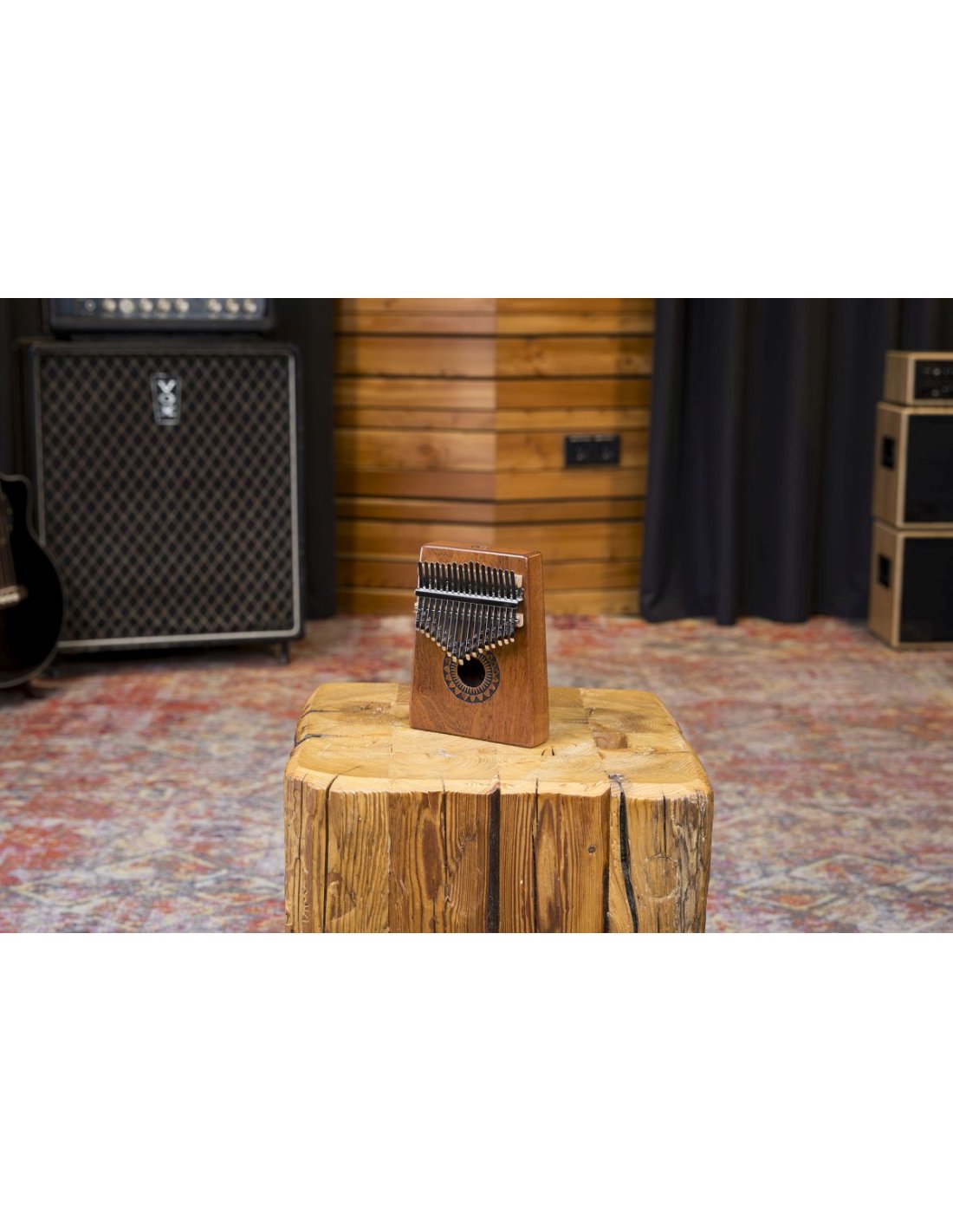 'The Meinl Percussion Sound Hole Designer Kalimba (thumb piano) pre-tuned to the C major scale and fun for all skill levels. Pinch the keys in any order and the notes will always be harmonic (there are no wrong notes). These chrome-plated steel keys produce soft melodies for creating, relaxing or meditating, plus, they are engraved with note information. The acacia wood body produces a warm sound and a hole increases resonance. Includes travel case, tuning hammer and microfiber cleaning cloth. Features: Easy at every level 17 notes, D Major scale d”, b', g', e', c', a, f, d, c, e, g, b, d', f', a', c”, e” (17 notes) Includes: travel case, tuning hammer and microfiber cleaning cloth