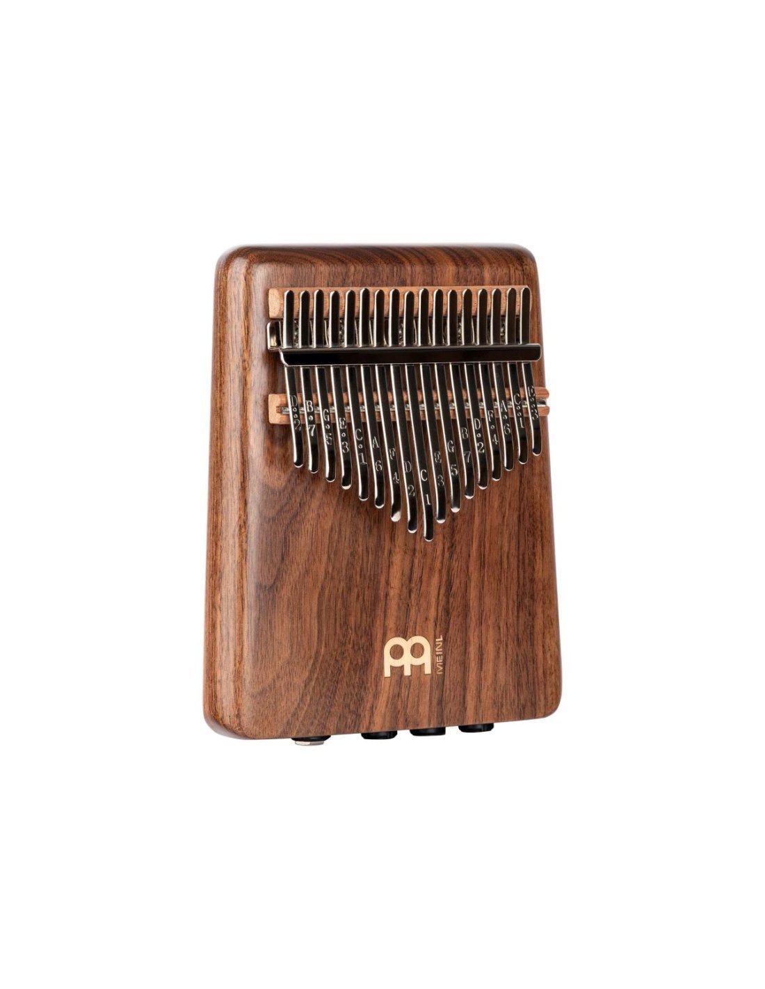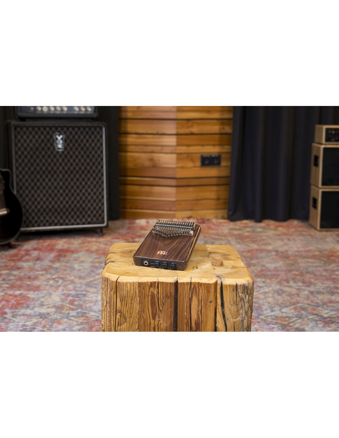 'The Meinl Percussion Solid Pickup Kalimba (thumb piano) pre-tuned to the C major scale and playable at all skill levels. Pinch the keys in any order and the notes will always be harmonic (there are no wrong notes). These chrome-plated steel keys produce soft melodies for creating, relaxing or meditating, plus, they are engraved with note information. The American walnut body produces a warm tone. Includes travel case, tuning hammer and microfiber cleaning cloth. This model features an integrated pickup and a high-quality quarter-inch output jack, allowing you to amplify it when needed, and equipped with volume, FX volume and tone control knobs to help you find your ideal mix. In addition, an additional AUX/REC and headphone output is available, making it a great choice for larger rooms, stages or even recording studios. Features: Easy at every level 17 Notes, C Major scale d”, b', g', e', c', a, f, d, c, e, g, b, d', f', a', c”, e” (17 notes) Includes: travel case, tuning hammer and microfiber cleaning cloth Material: American Walnut Pickup Connections: 6.3 mm jack, 3.5 mm Aux/Rec, 3.5 mm Headphones Volume Control Controls: Reverb, Chorus, Delay'