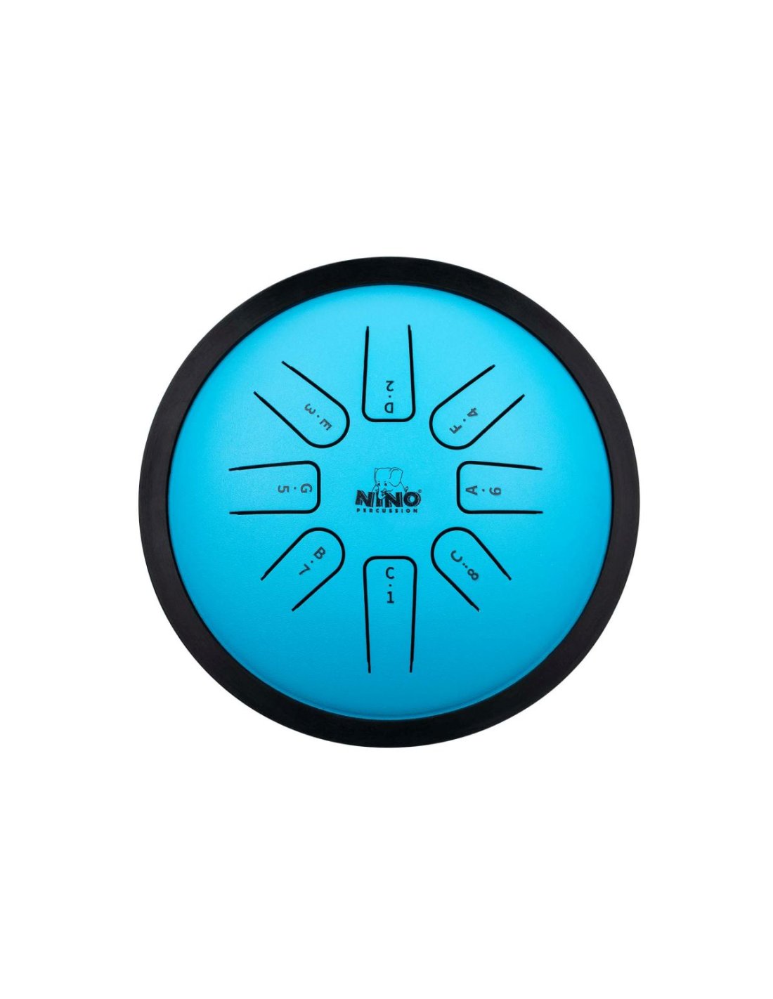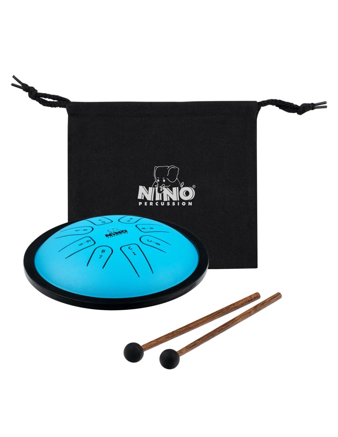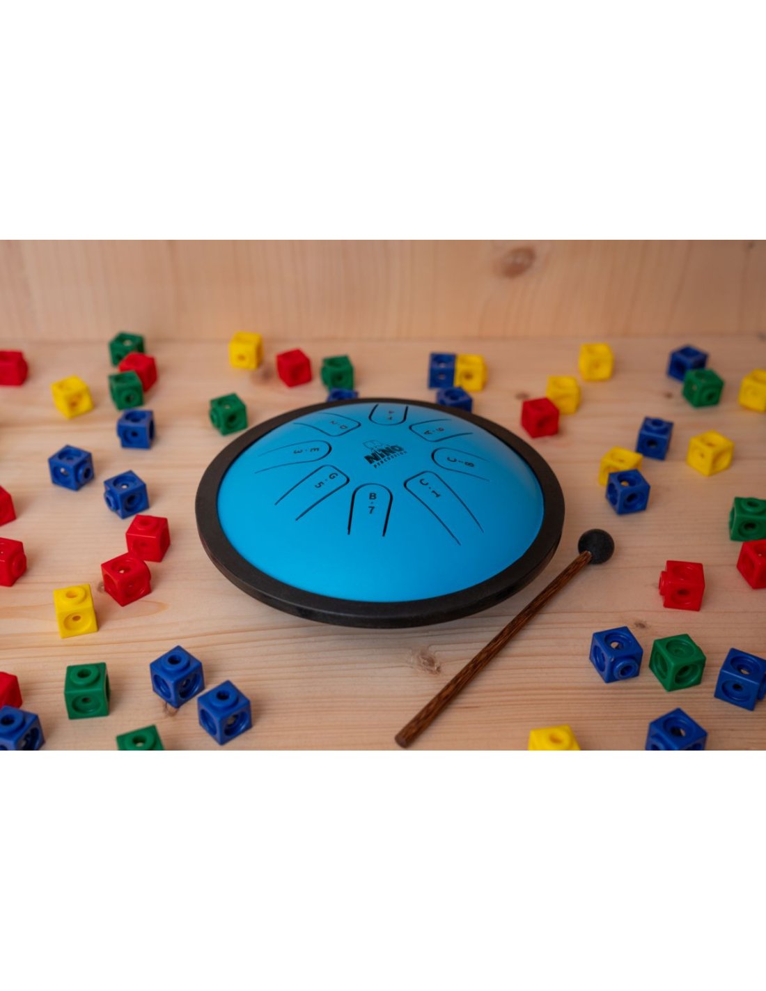 From NINO¨ Percussion here is the small steel tongue drum with pre-tuned notes that any young musician or teacher can play. This 7-inch diameter steel tongue drum can be played by anyone, anywhere, regardless of ability. Great for younger children learning music or for teachers to use as a signal to gather a classroom. Its pre-tuned scale means there are no wrong notes and the sound is sweet and relaxing (like a soft steel drum). It includes a carrying bag and two soft rubber sticks for a full and calm tone. Features: Great in class or for playing at home Pre-tuned C Major Scale Creates a relaxing and ethereal sound Includes a carrying bag and two soft rubber knobs Pitch: Cõ, Dõ, Eõ, Fões, Gões, Aões, Bões, Cões Measures: 7Ó with 8 tabs Color: Blue NINO24