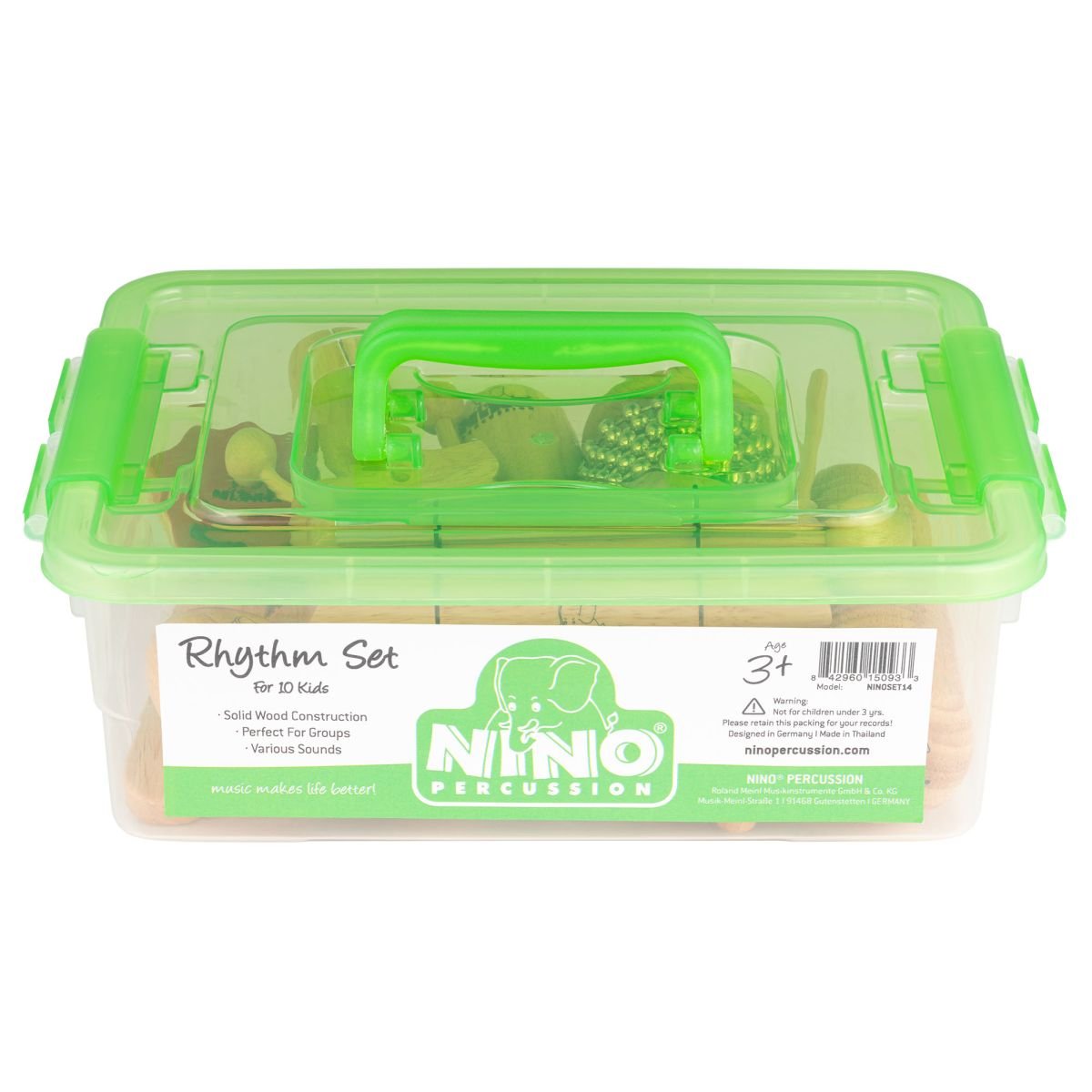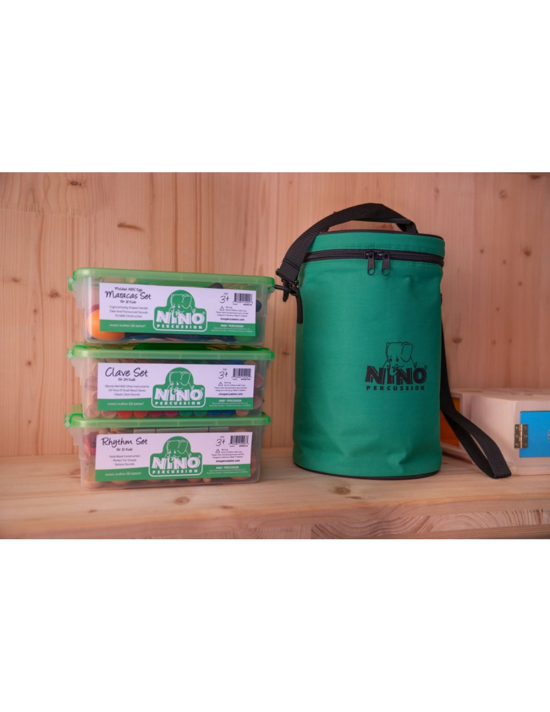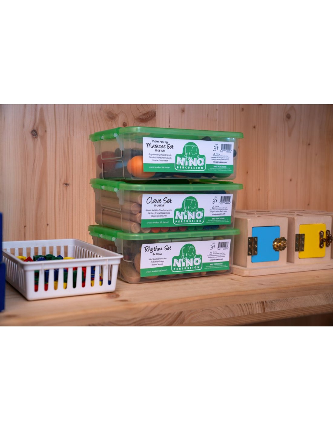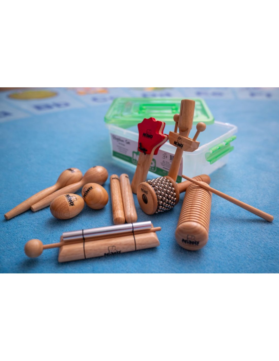 Get a range of percussion sounds in a single set with NINO¨ mixed drum rhythm sets. This set contains a mix of instruments designed to help teach young musicians about percussion with the practical use of real rhythm instruments that are fun to play. Great for the classroom or at home. Suitable for 10 children. Includes: 1x Wood Egg Maracas, Pair (NINO565) 1x Wood Claves, Pair, small (NINO502) 1x Wood Pecker (NINO519) 1x Wood Egg Shaker, Pair, small (NINO562-2) 1x Wood Hand Castanet (NINO585) 1x Wood Gÿiro Shaker (NINO520) 1x Cabasa, small (NINO701) 1x Energy Chime, small (NINO579S) 1x Storage Container Box Dimensions: 27.5 x 20 x 9 cm 10.8Ó x 7.9Ó x 3.5Ó NINO24
