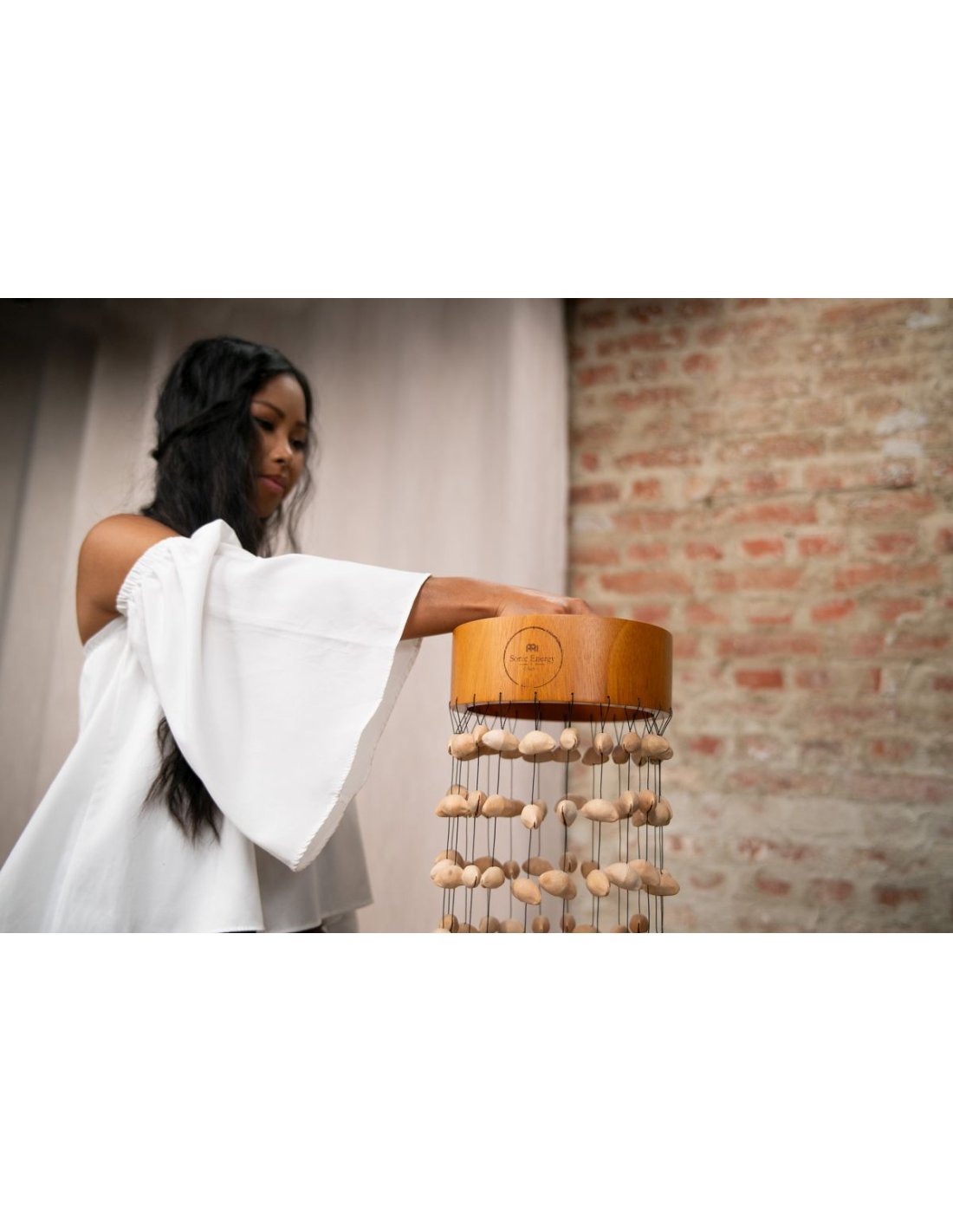 'The Meinl Sonic Energy Kenari Meditation Chime features a beautiful Flower of Life design and is built like a typical breath stamp. In addition to its relaxing sound, it also makes a fantastic decorative element. With the ring attached to the top, you can hold it comfortably in your hand or hang it up. Flower of Life design, relaxing and clear sound, can be played with your hands or hung. Dimensions 7.87" x 15.35", 20 cm x 39 cm SE2024'