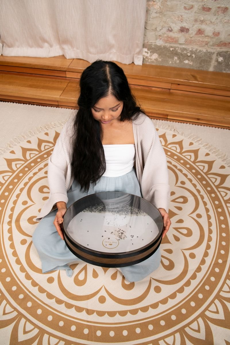 'The Meinl Sonic Energy Wave Drum create the relaxing sounds of surfing. A sealable fill port allows you to control the number of beads inside. Hold the instrument horizontally and move it gently from left to right to enjoy the beautiful sounds of the ocean. You will immediately feel as if you were on a beach vacation. The Wave Drum perfect for meditation, yoga, relaxation exercises, sound healing sessions and as a percussion instrument. Note: Our frame drums are natural products, so each instrument is unique and different skin textures may appear. Sound of waves, The sealable filling port allows you to control the number of beads inside, Sound as soft and relaxing as a cool breeze, Glass pearl balls and amaranth. Dimensions 16" x 2.5", 40.6 cm x 6.4 cm SE2024'