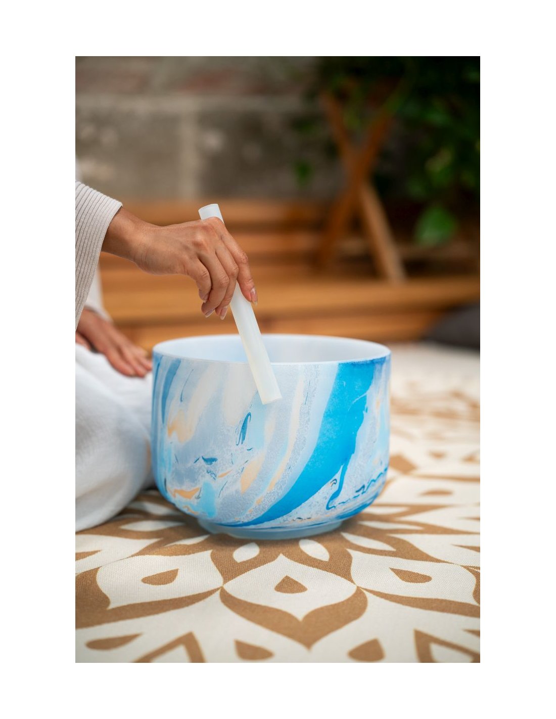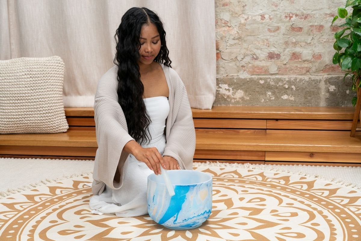 'The Meinl Sonic Energy Crystal high-purity quartz satin bells create a very pleasant atmosphere with their sound and design. The full, lasting sound spreads when the bell is sounded gently, by tapping or rubbing so that the energy can be felt throughout the surrounding environment. The beautiful marbled color of the bells oriented to the corresponding respective chakra. You can use crystal bells for a wide variety of purposes: chakra healing, meditation, sound therapy, yoga, improving domestic Fengshui, regulating your emotional state or even just to decorate a room. Each crystal bell comes with a white silicone ring to prevent possible shocks and damage, and ensure the best resonance. Features: The marbled color corresponding to a chakra Extremely long resonance Material: High-purity quartz Diameter: 10"/25 cm Note A4 432Hz Third Eye Chakra - Blue SE2024'