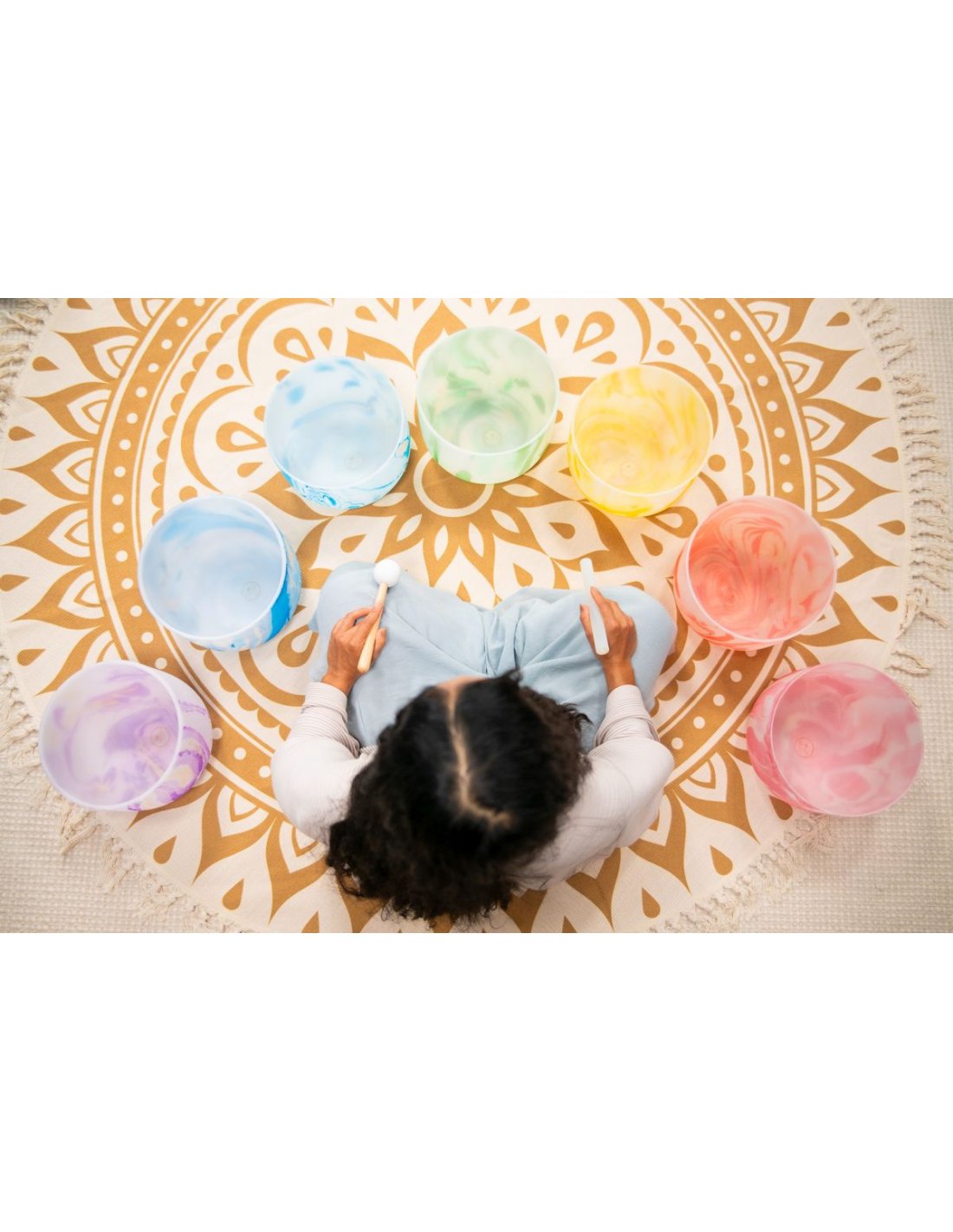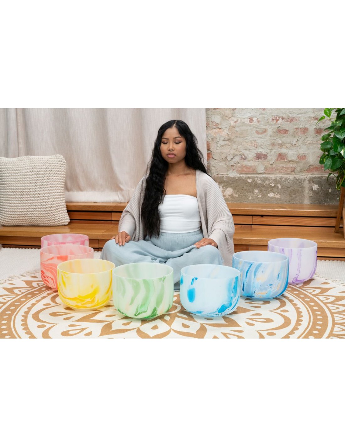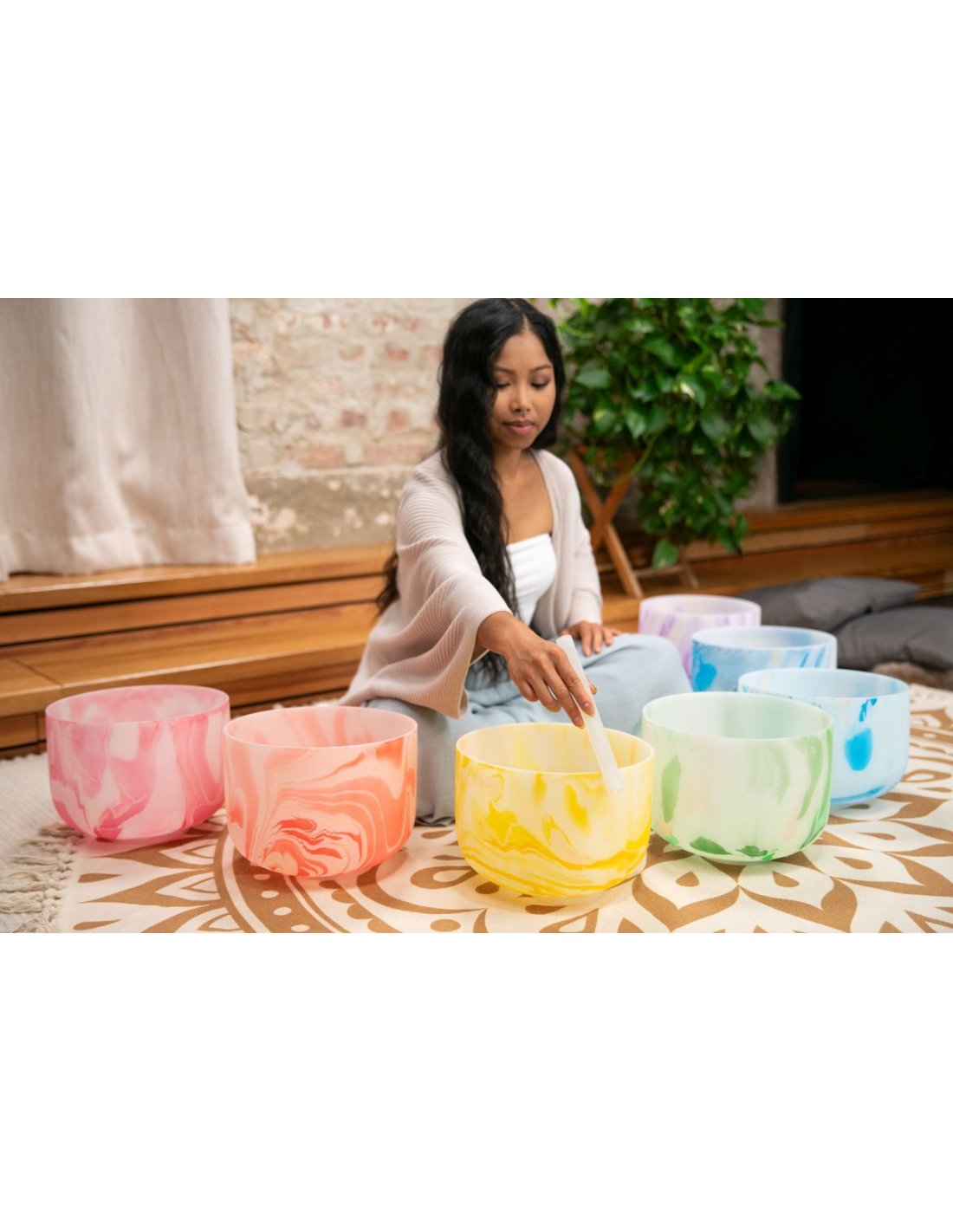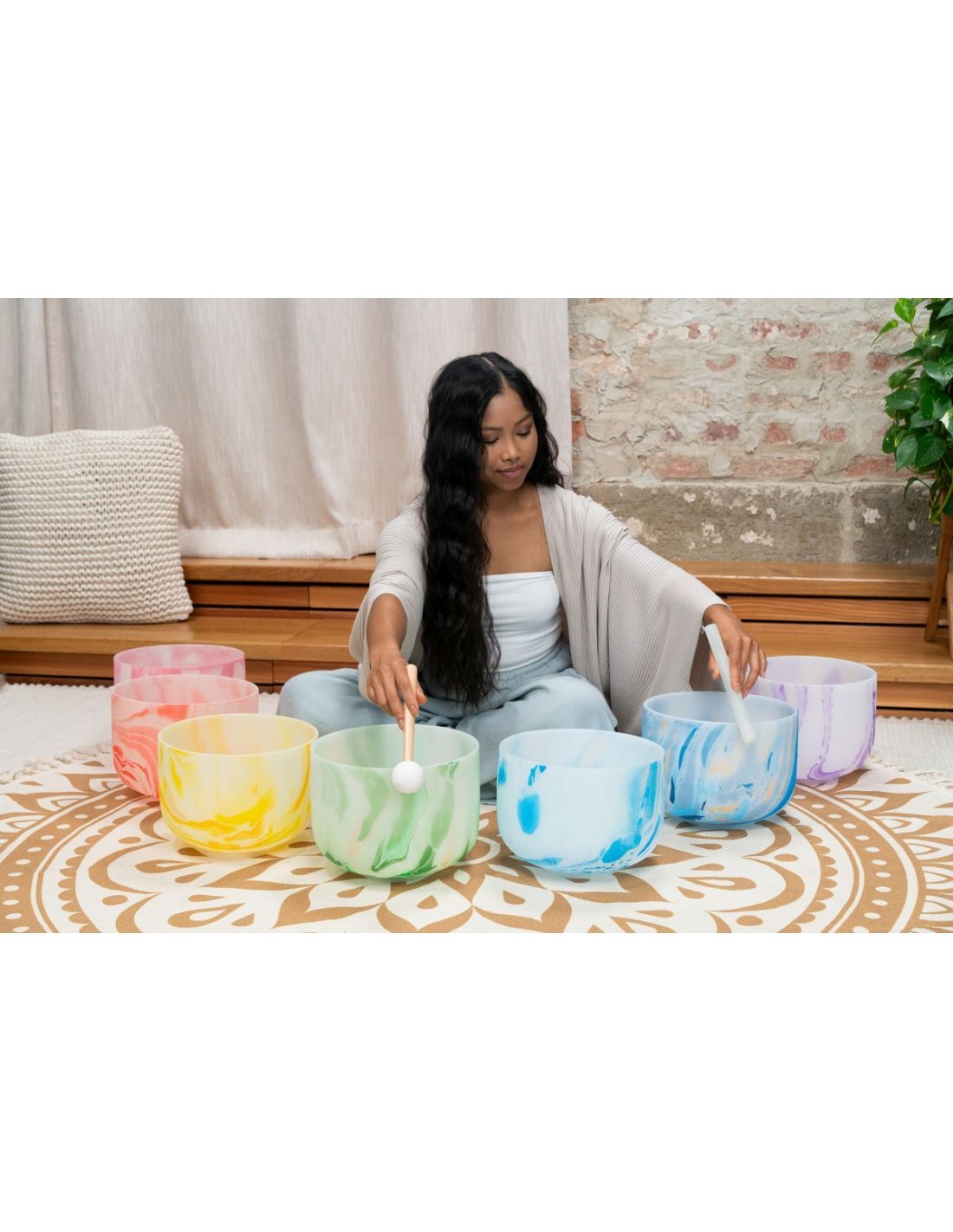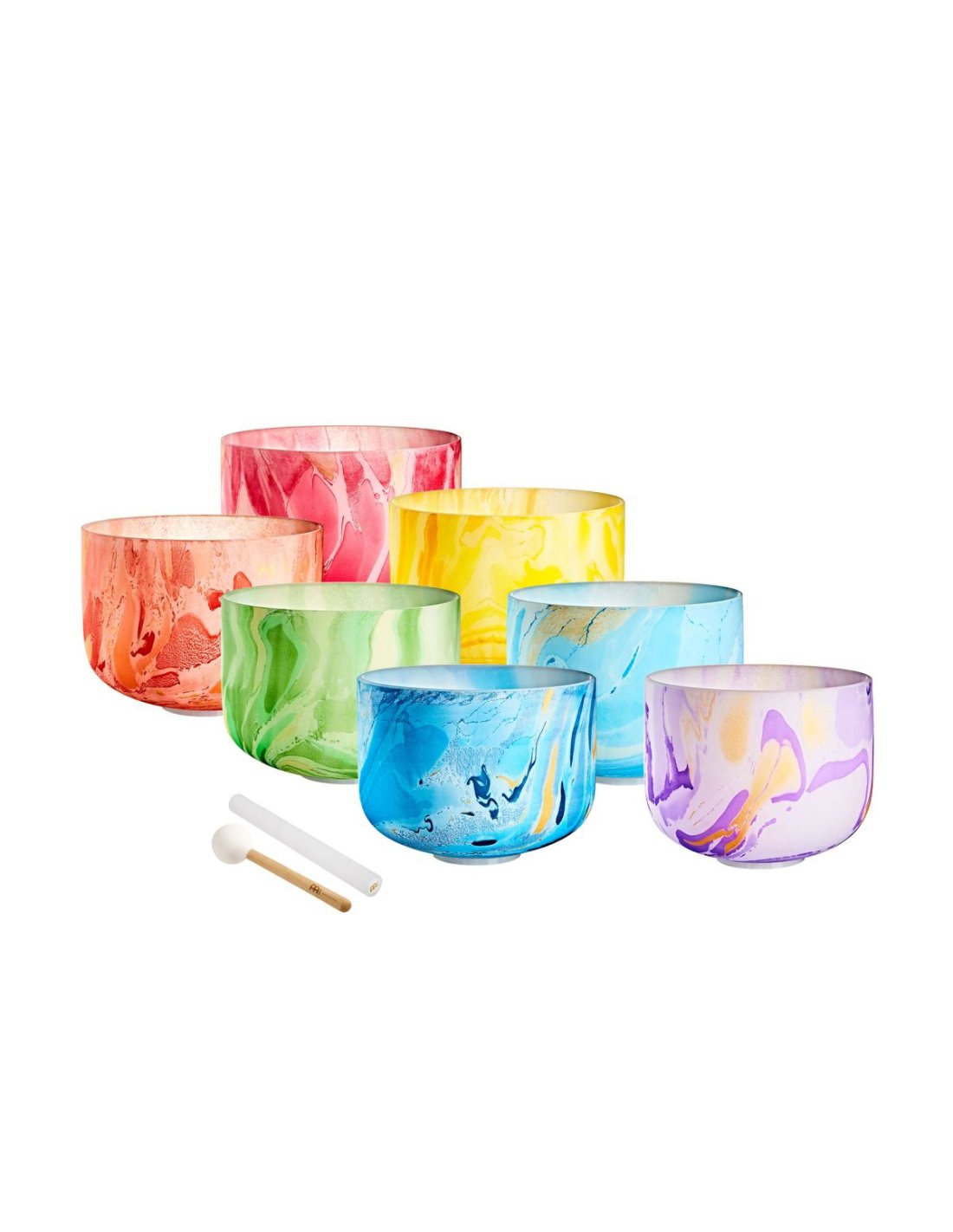 The Meinl Sonic Energy Crystal high-purity quartz satin bells create a very pleasant atmosphere with their sound and design. The full, lasting sound spreads when the bell is sounded gently, by tapping or rubbing so that the energy can be felt throughout the surrounding environment. The beautiful marbled color of the bells oriented to the corresponding respective chakra. You can use crystal bells for a wide variety of purposes: chakra healing, meditation, sound therapy, yoga, improving domestic Fengshui, regulating your emotional state or even just to decorate a room. Each crystal bell comes with a white silicone ring to prevent possible shocks and damage, and ensure the best resonance. Features: The marbled color corresponding to a chakra Extremely long resonance Material: High-purity quartz Set of 7 Chakras + 2 SE2024 knobs