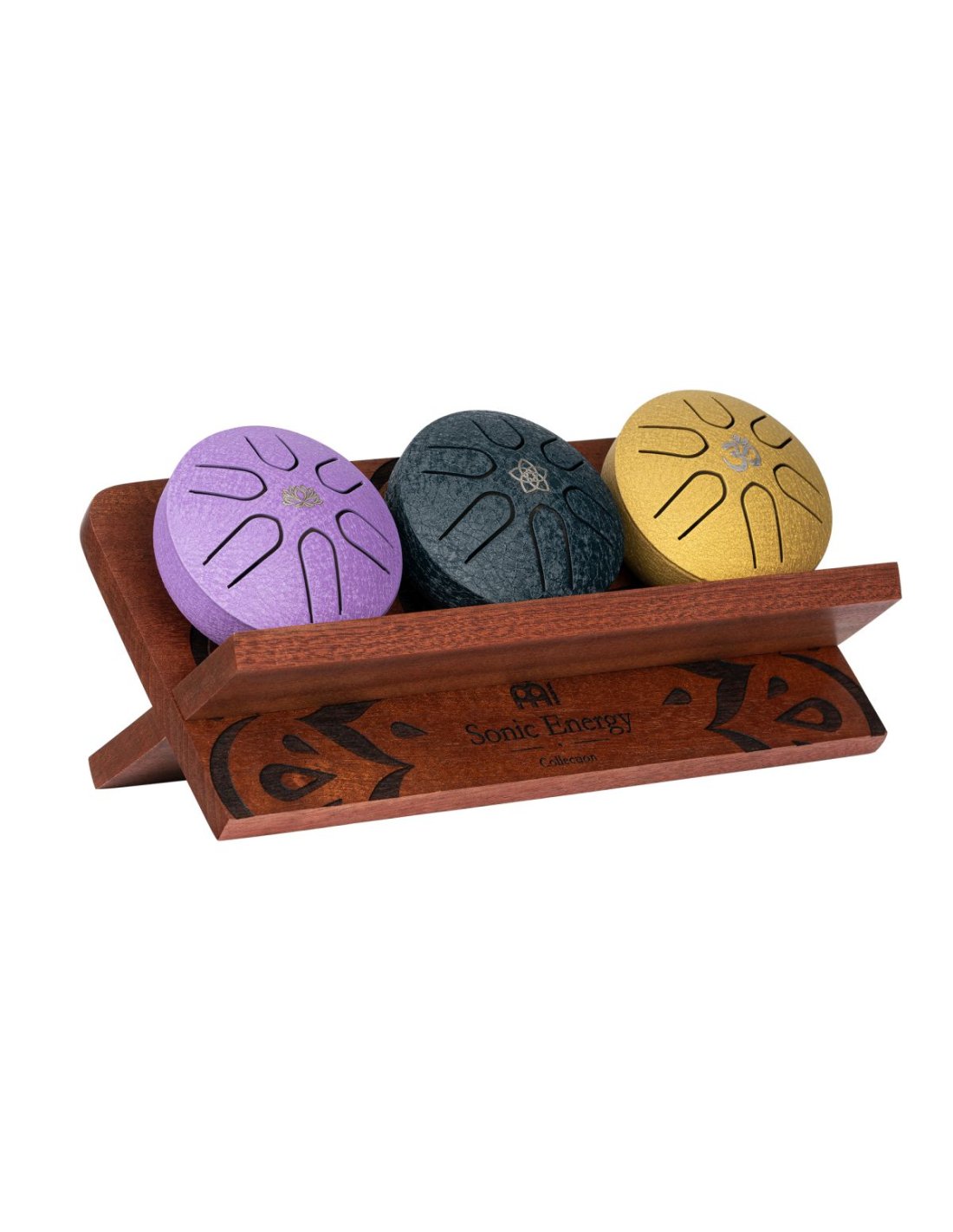 'The perfect holder for three Pocket Steel Tongue Drum Meinl Sonic Energy Pocket Easy to assemble with a simple plug connection, decorative pattern, Easy plug connection. Dimensions 9.4"/24 cm wide, 3.5"/9 cm