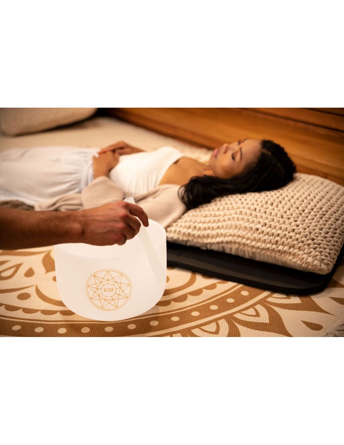 The Meinl Sonic Energy Solfeggio Crystal Tibetan bells are made using ancient frequencies. Solfeggio frequencies are vibrations of sounds that are said to have a healing and health-promoting effect on our body, mind and soul. Already in ancient times, these frequencies were known and used for the treatment of physical and psychological illnesses. For example, the monks used these historic frequencies in their Gregorian choirs and saw a healing effect in the transmission of vibrations to the body. These white frosted Tibetan bells made of high purity quartz create a very pleasant aura with their sound and design. Their long-lasting spherical tone spreads when the Tibetan bell is gently tapped or rubbed so that the energy can be felt throughout the surrounding environment. All crystal bells are equipped with a silicone ring to avoid possible shocks and ensure the best resonance. You can use crystal bells for a variety of purposes: chakra healing, meditation, sound therapy, yoga, improving the Fengshui of your home, regulating your emotional state or for decoration. Frequency: 639 Hz represents harmonious relationships, love, tolerance and communication. Listening to this frequency harmonizes relationships between people and promotes inner balance. Chakra: Heart chakra