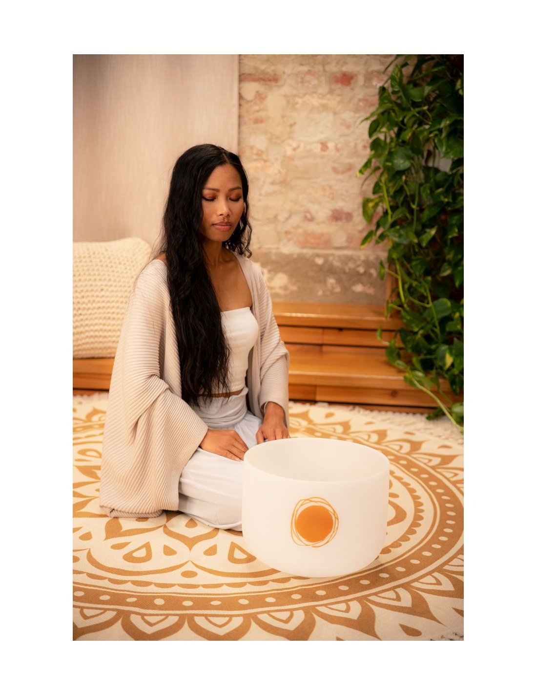 'The Meinl Sonic Energy Planetary Tuned Crystal Tibetan bells are made using calculations by Hans Cousto (The Cosmic Octave) to match the frequencies of the Sun, Moon and planets. Each one tuned to produce the corresponding frequency of the heavenly body. These white frosted Tibetan bells made of high purity quartz create a very pleasant aura with their sound and design. Their long-lasting spherical tone spreads when the Tibetan bell is gently tapped or rubbed so that the energy can be felt throughout the surrounding environment. Frequency: Schumann 250.56 Hz also commonly known as the “good weather frequency” because it can contribute to a sense of well-being and a positive mood. Chakra: Crown Chakra'