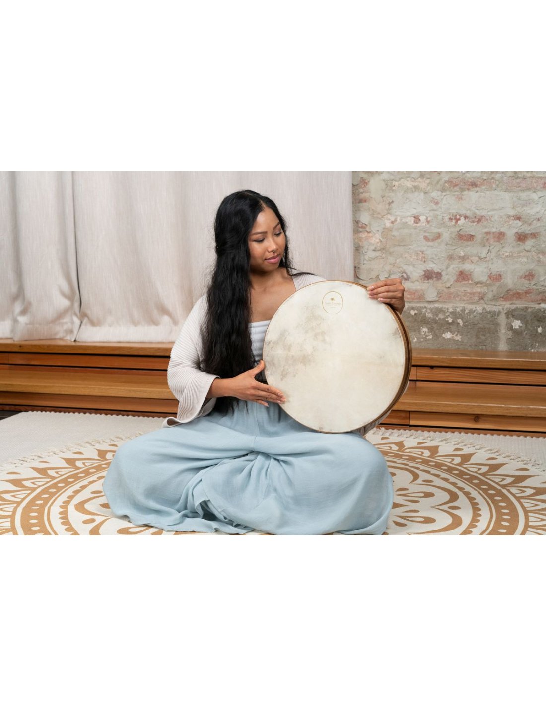 'The Meinl Sonic Energy Wave Drum create the relaxing sounds of surfing. A sealable fill port allows you to control the number of beads inside. Hold the instrument horizontally and move it gently from left to right to enjoy the beautiful sounds of the ocean. You will immediately feel as if you were on a beach vacation. The Wave Drum perfect for meditation, yoga, relaxation exercises, sound healing sessions and as a percussion instrument. Note: Our frame drums are natural products, so each instrument is unique and different skin textures may appear. Sound of waves, The sealable filling port allows you to control the number of beads inside, Sound as soft and relaxing as a cool breeze, Glass pearl balls and amaranth. Dimensions 16" x 2.5", 40.6 cm x 6.4 cm SE2024'