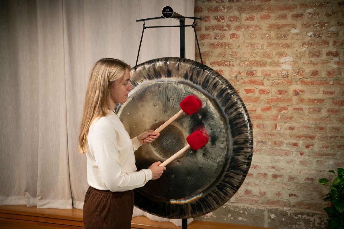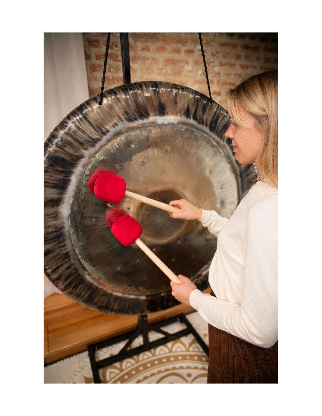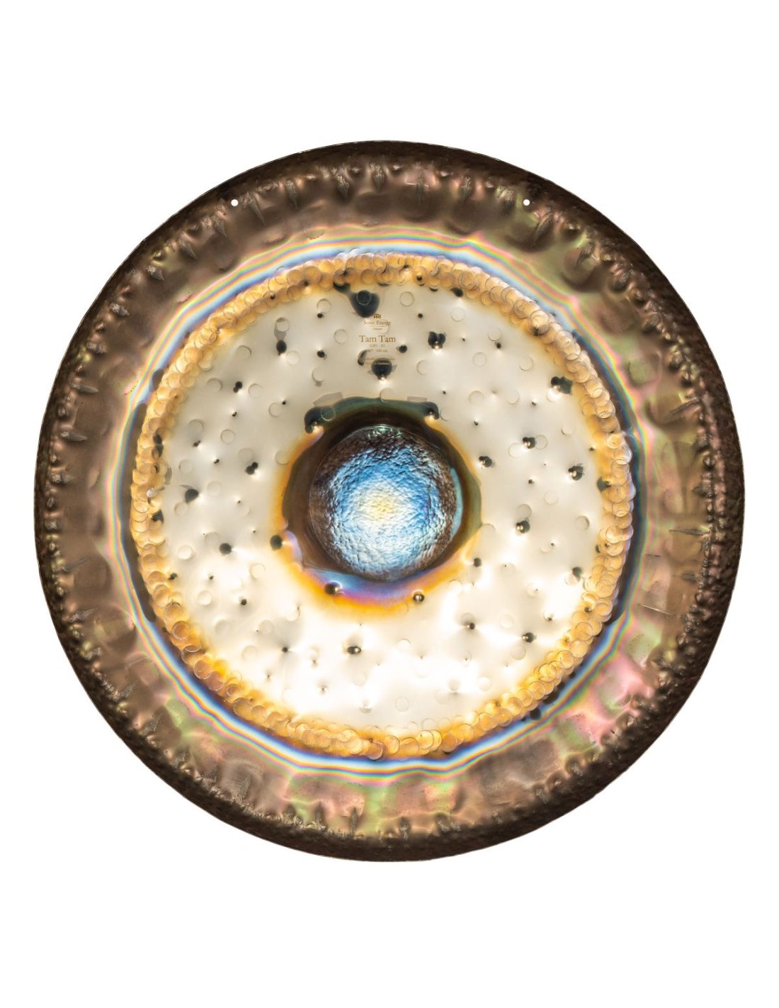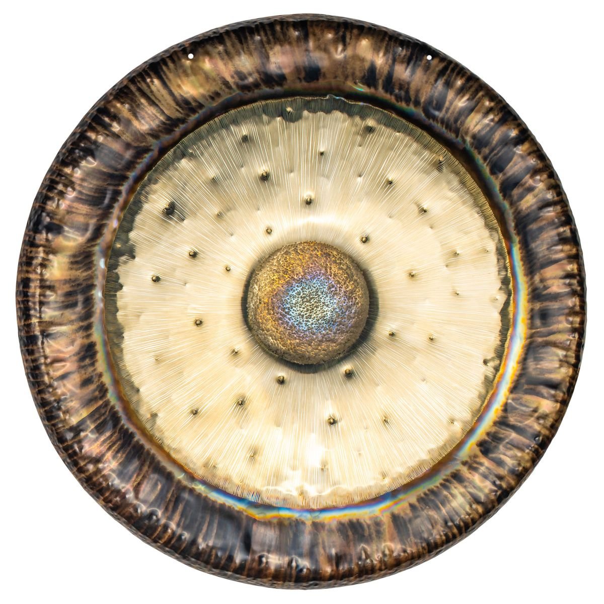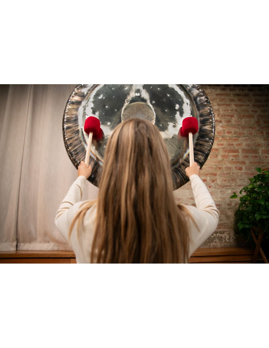 'The Giant Tam Tam Meinl Sonic Energy are masterpieces of construction traditionally handmade in Germany according to the European gong manufacturing tradition. Gong craftsmen produce these gongs because they respond with exceptional sensitivity in all sound situations. The metal processing is very long, so that they get their unique, relaxing and suggestive sound. The center of these gongs has beautiful hammerings and remains slightly concave with respect to the surface. The surrounding surface is scraped outwards in the shape of a star and marked by large characteristic hammer blows. These beautiful instruments meet the highest sound requirements of sound professionals, sound meditation studios or orchestras. The impressive size and power of this instrument will not fail to amaze listeners. As mallets for combined Gongs, we recommend MTTB-40, MGB-L and MGM-L-R, available in different colors. Diameter: 40"/100 cm SE2024'