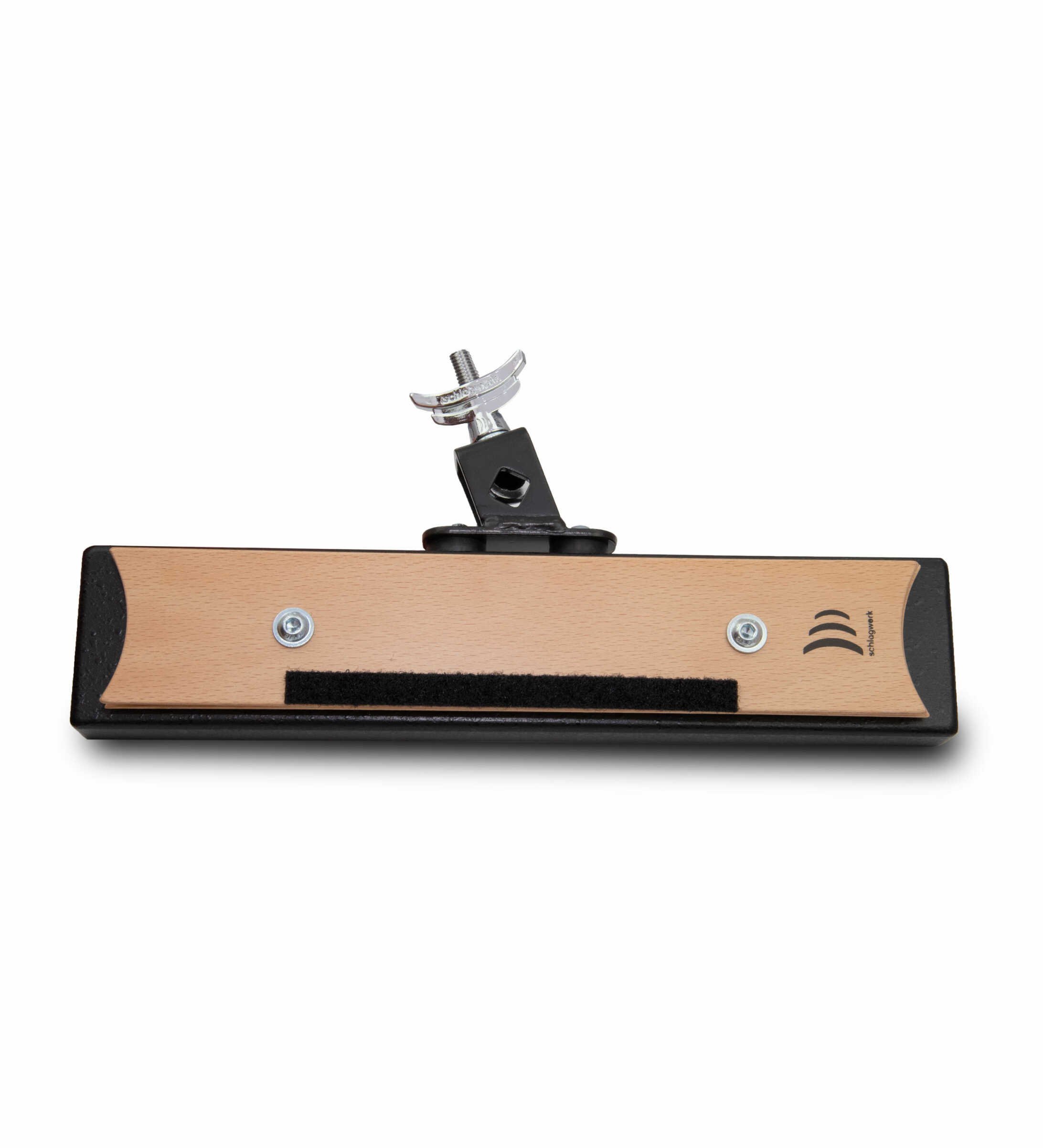 DynaCrasher is made with ultra-resistant wooden strips and spiral tailpiece, mounted on a solid wooden base - Unlike the common Crasher currently on the market, made by superimposing metal strips, DynaCrasher offers greater musicality and a wide dynamic range - It can in fact be played both with the hands and with the sticks - Mountable on any standard rod with a diameter of 9-10 mm