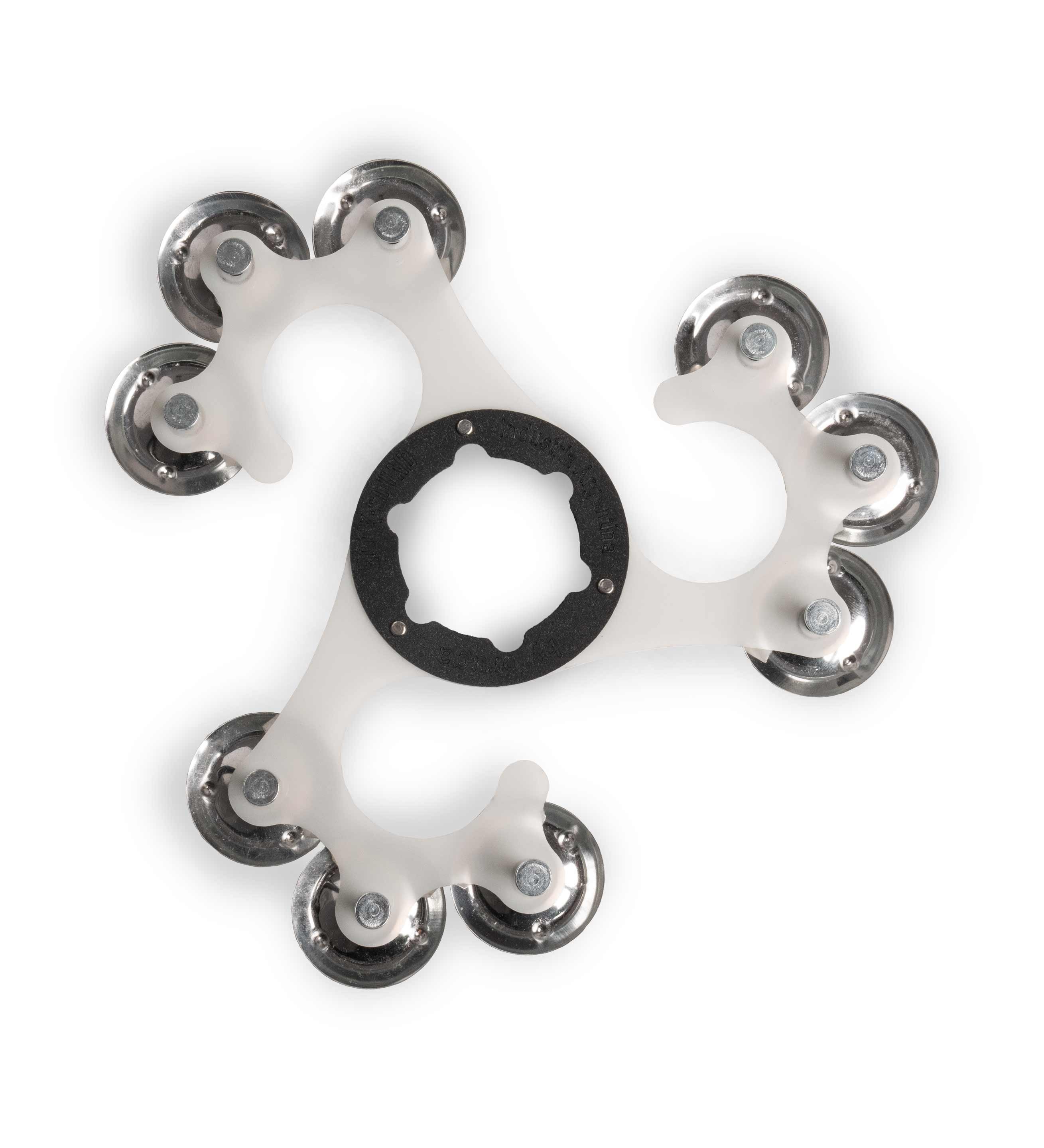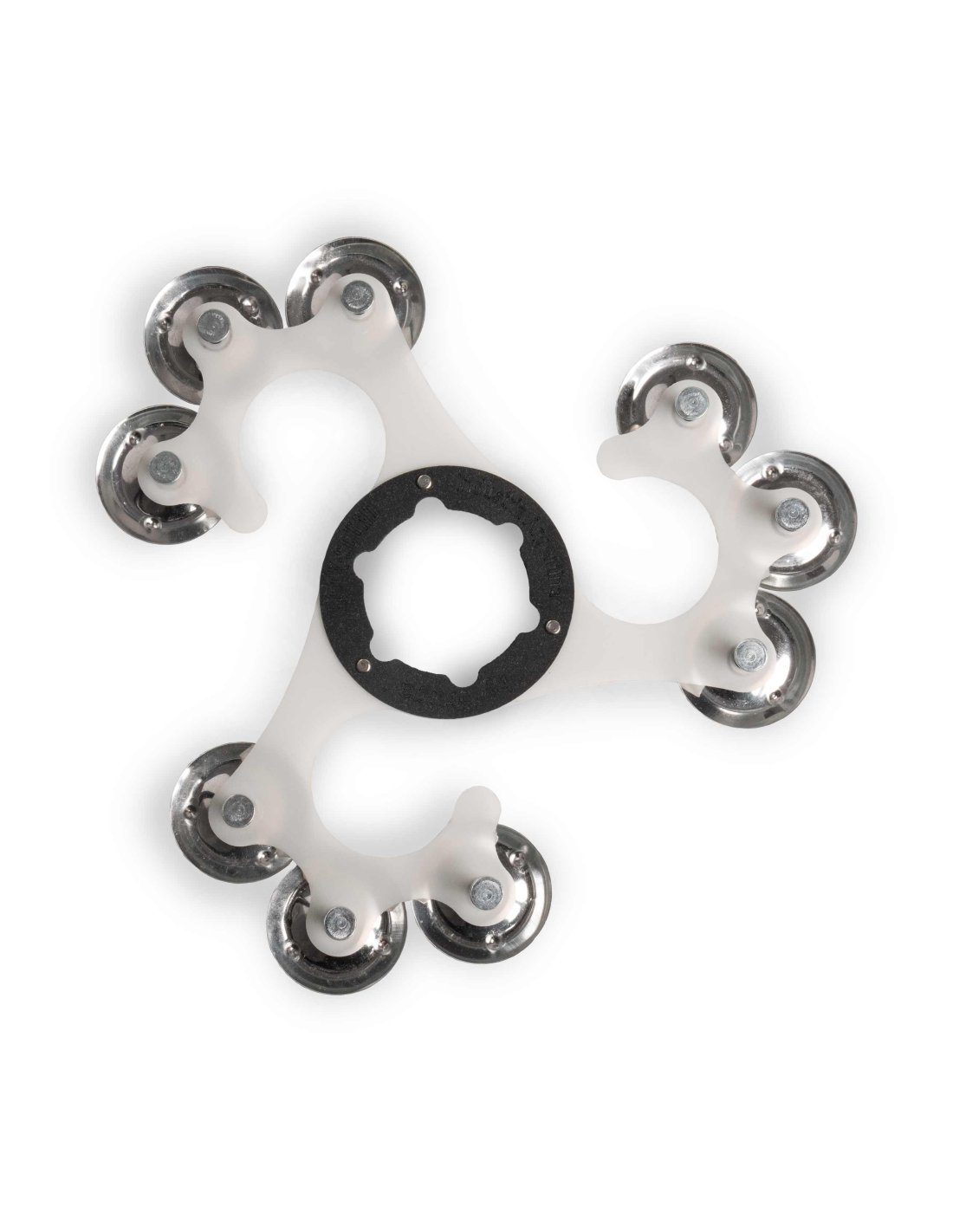with 9 steel jingles - suitable for hi-hats and cymbals - universal positioning system on the plate, with hook shape for a greater variety of solutions