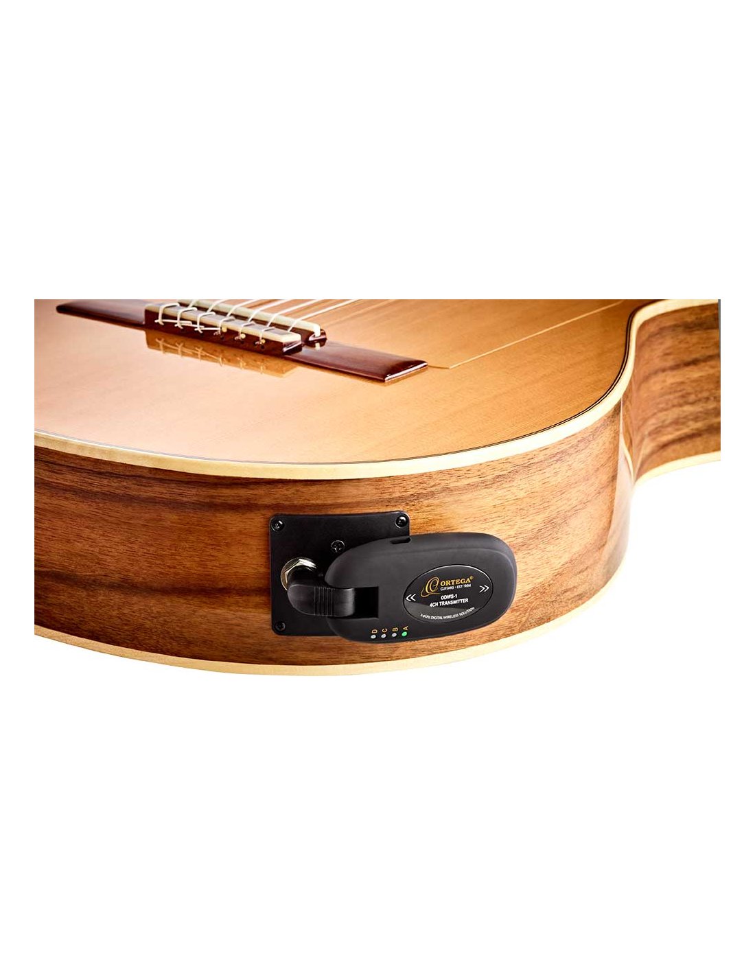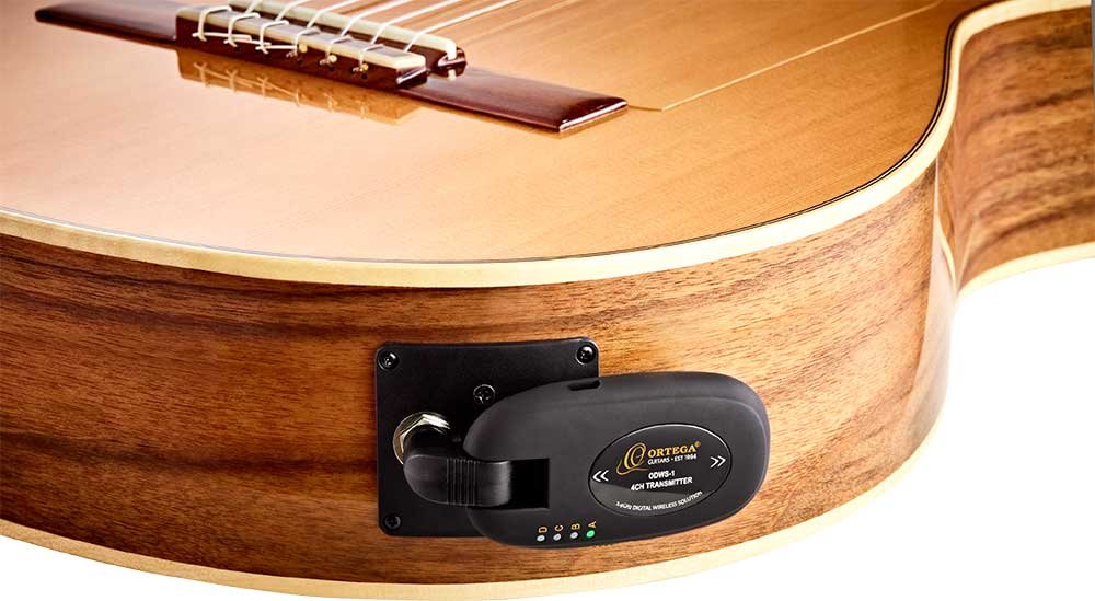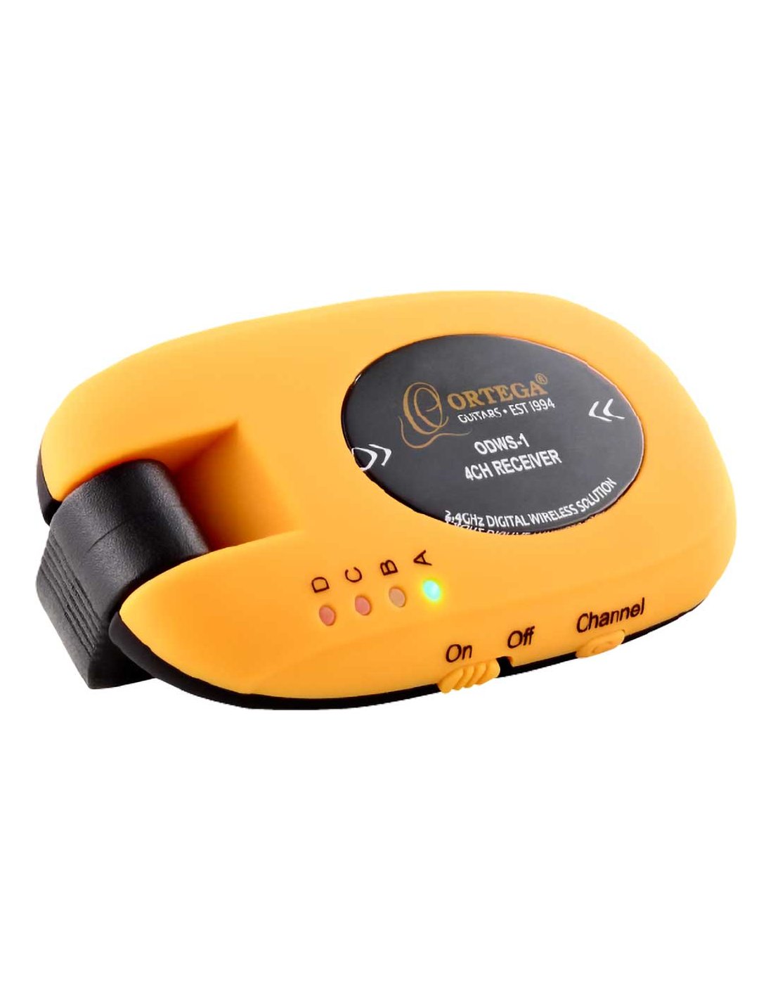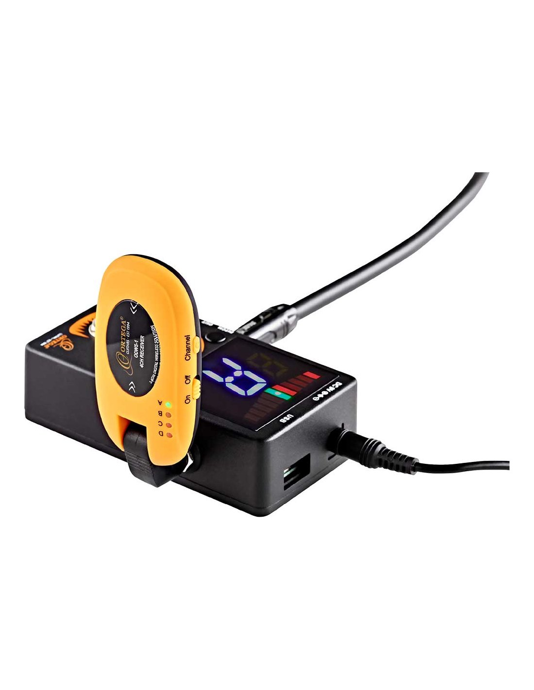 Wireless system for active and passive instruments. It works at 2.4 GHz ISM without interference. Up to 30 meters of coverage. With rechargeable batteries via USB for both the transmitter and the receiver. 5 hours of battery life. 4 selectable channels displayed with bright LEDs. Possibility to use 3 additional systems for a total of 4 simultaneous systems. 24-bit/48kHz transmission without compression. Plug and play. Stand by after 10 minutes of non-use. Includes black transmitter, orange receiver and USB charging cable.
