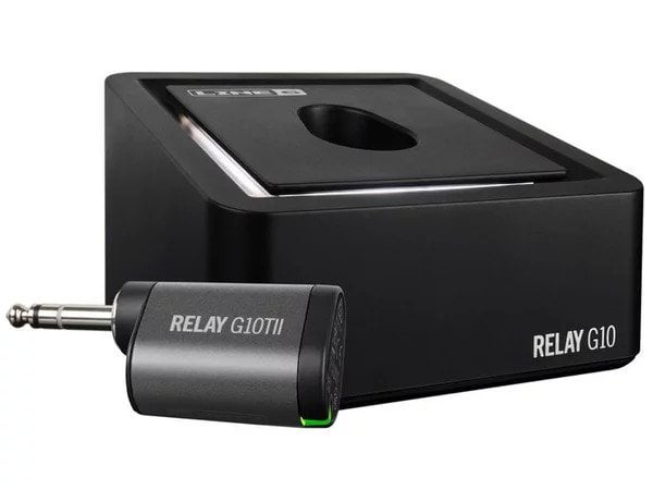 LINE6 RELAY G10II. Plug-and-play 24bit digital wireless system for connecting guitars and basses with a transmission range of 15m, automatic configuration, XLR audio outputs and TRS Jack, transmitter with a lithium-ion battery with 6h of battery life and rechargeable directly on the Dock with a connection jack, Dock receiver with an audio frequency range of 10-20,000 Hz and USB-C charging
