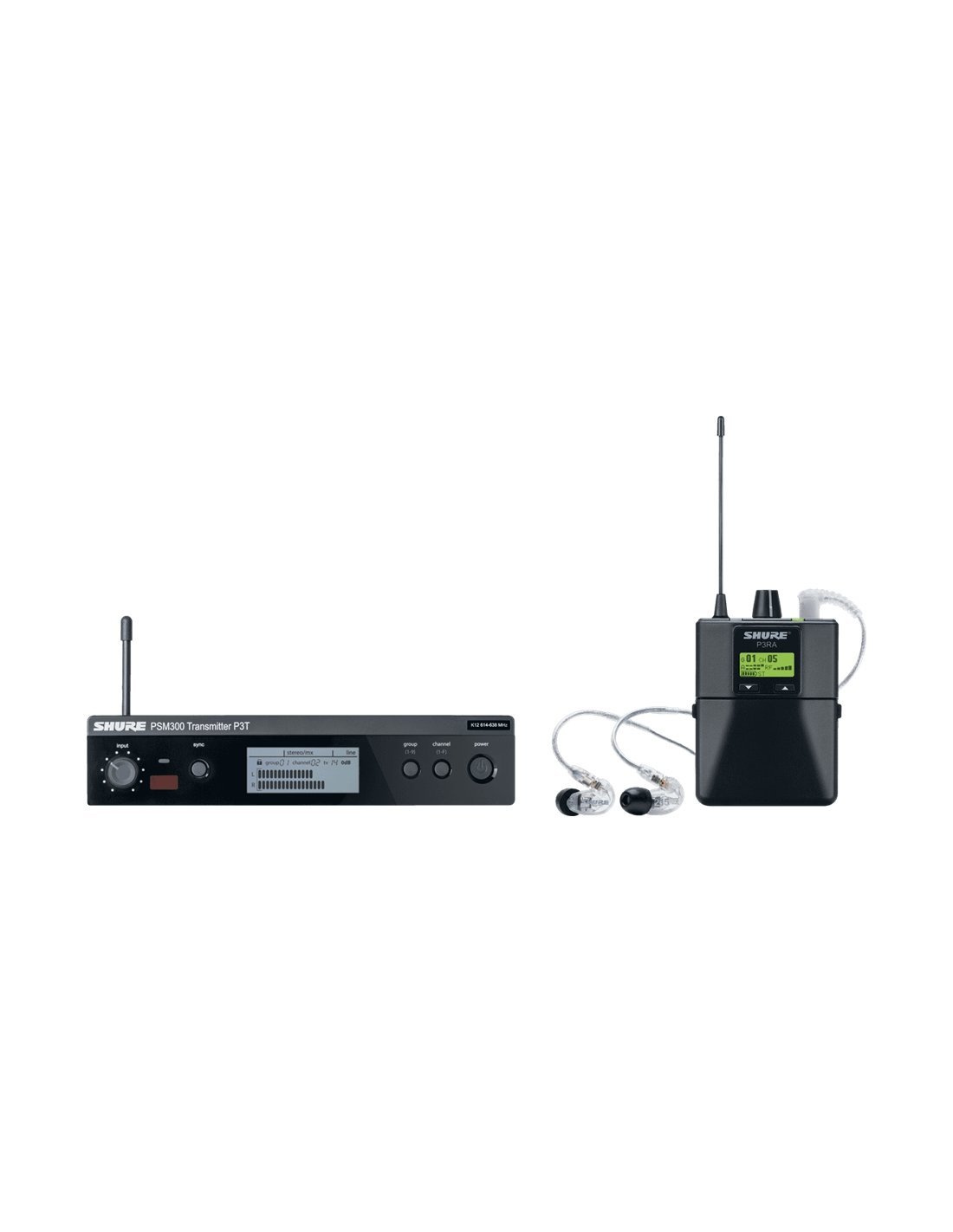 The SHURE P3TRA215CL PSM300 EAR MONITOR KIT is a professional wireless in-ear monitor system, easy to use and intuitive. The SHURE P3TRA215CL PSM300 package includes the SE215CL earphones with insulating membrane, the