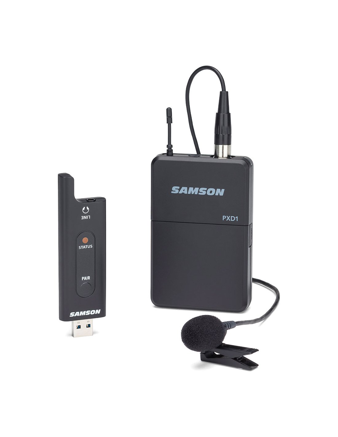 SAMSON XPD2 PRESENTATION USB is a UHF Wireless radio microphone system that consists of a Lavalier microphone, bodypack transmitter and 2.4Ghz USB receiver. Technical features include 2.4 GHz USB receiver with Pair button for pairing and 3.5 mm jack headphone output, PXD1 bodypack powered with 2 AA batteries, 30 m of maximum range, Lavalier LM5 microphone with omnidirectional condenser capsule and 3-pin mini-XLR connection. Includes carrying case