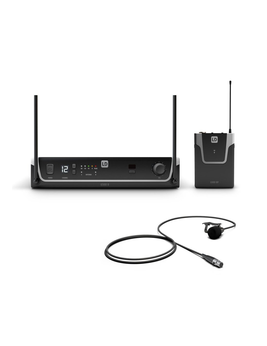 LD SYSTEMS U305 BPL LAVALIER (504-608MHZ). UHF radio microphone system that includes U300R Transmitter with 5 selectable frequency bands, one-touch frequency synchronizer via infrared, LED indicators with 5-segment LED meter and battery indicator, Bodypack U300BP with 3-position adjustable input signal level, stand-by button, omnidirectional cardioid polar pattern Lavalier with 3-pin mini XLR connector and clip on the end of the capsule for positioning. Frequency range 504-608 MHZ