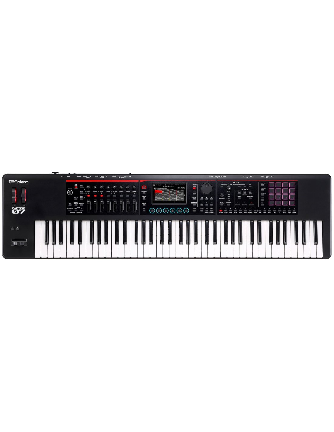 The Fantom-07 is a Roland workstation synthesizer. It is equipped with a ZEN-Core synthesis generator and SuperNATURAL technologies, powerful DSP engine, internal sampling functions, 16-step sequencer, TR-REC pattern sequencer, vocoder, internal 4x32 USB audio interface, numerous backlit controls, 1 lever and 2 pitch bend and modulation wheels